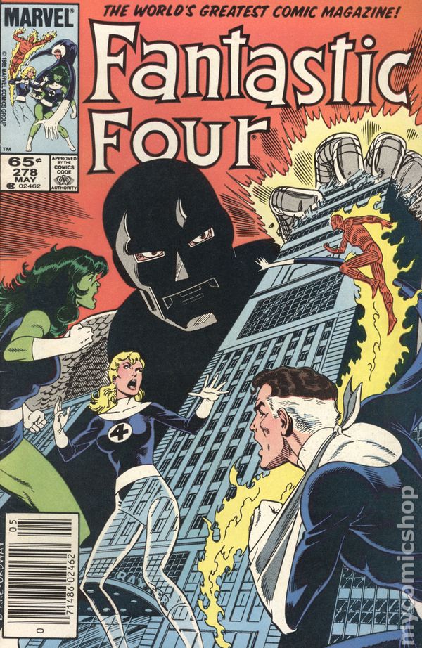 Newsstand Edition. "True Lives!" Part 1 of 2. Guest-starring Wyatt Wingfoot. Story by John Byrne. Art by John Byrne and Jerry Ordway. Cover by John Byrne. See the startling secret origin of Victor Von Doom through the eyes of Doctor Doom himself. Plus, don't miss Doom's ultimate attack on his hated enemies the Fantastic Four, as he launches the Baxter Building itself into outer space! Will Marvel's First Family survive long enough to find a way out of this predicament before they are cast into oblivion? 36 pgs. Cover price $0.65.