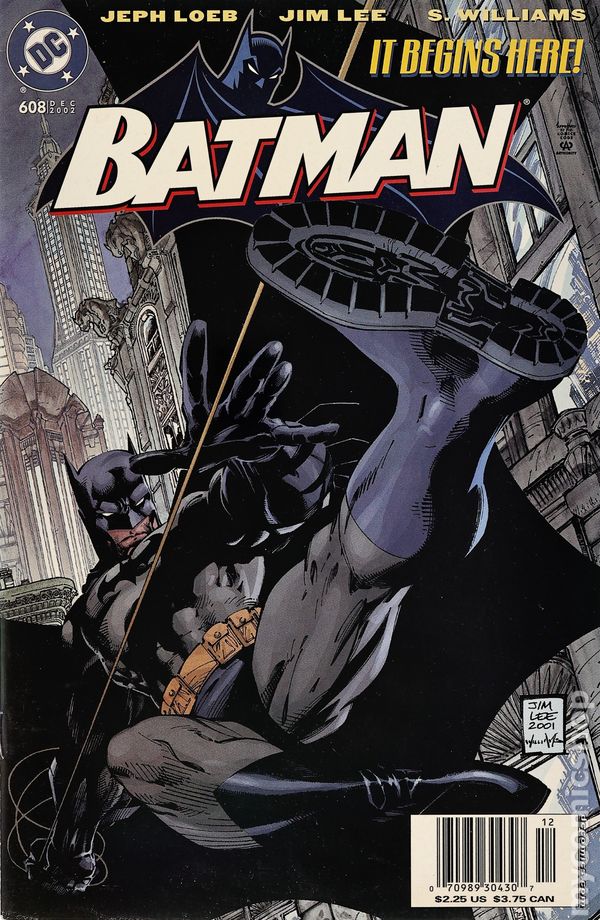 First Printing. Newsstand Edition. Cover by Jim Lee and Scott Williams. Story by Jeph Loeb. Art by Jim Lee and Scott Williams. Jeph Loeb & Jim Lee begin their much-anticipated run on BATMAN with the 12-part "Hush." What's this new storyline about? Like the title says, it's a secret that's best kept under wraps for now. But Killer Croc is sure to be a part of the puzzle. What we can tell you is that Batman attempts to bring an end to the vile kidnapping of an innocent child. But suddenly, all hell breaks loose... 44 Pages, Full Color. Cover price $2.25.