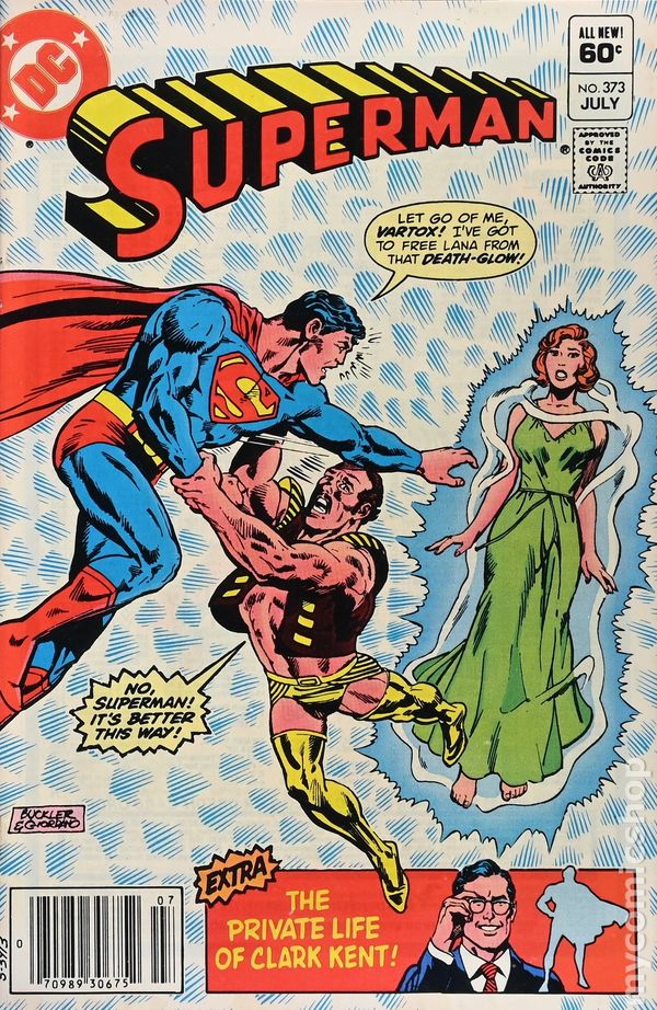 Newsstand Edition. Cover pencils by Rich Buckler, inks by Dick Giordano. Lana Lang's Farewell To Earth!, script by Cary Bates, pencils by Curt Swan, inks by Dave Hunt; Vartox stops by Earth to see Lana, and a mysterious person has granted Lana the ability to return to Vartox's planet with him. An Eye (and Ear) On the World!--Private Life of Clark Kent, script by Bob Rozakis, art by John Calnan; Clark Kent helps Supergirl at her day job on a soap opera. 36 Pages, Full Color. Cover price $0.60.