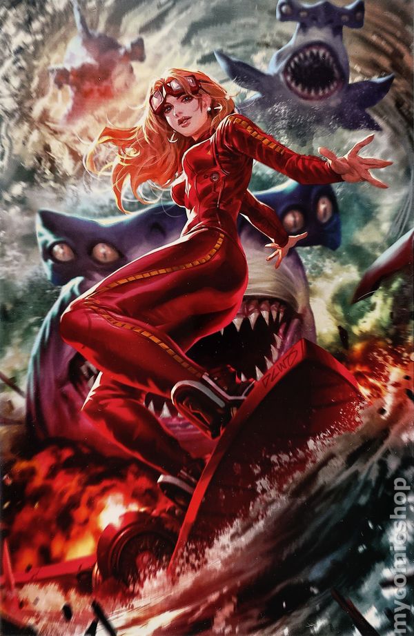 Virgin Variant Cover. Written by Sarah Hoyt. Art by Riccardo Bogani. Cover by Derrick Chew. Out of the fire and into… what, exactly? Barbarella has managed to escape the home world of the Architects, but now she finds herself on a once-thriving world long ago reclaimed by nature and a people forever reduced to helpless foragers. But there's something else hidden on this world as well, an armed resistance, brought together to avenge the countless victims of the Architects. Meanwhile, Vix--left behind on the home world--now finds herself on the receiving end of some very dangerous questions. Prepare yourself for an exclusive look inside the brain of Vix, or at least the brain of Vix on drugs! 32 pages full color. Rated T+ Cover price $3.99.