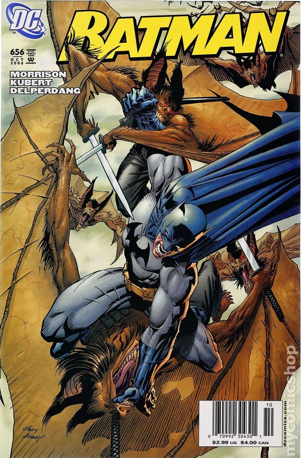 Newsstand Edition. Written by Grant Morrison. Art by Andy Kubert & Jesse Delperdang. Cover by Kubert. What do you get when you add one Batman, fifty Ninja Man-Bats and the British Prime Minister's wife? Welcome to a glittering night of mayhem among the rich and famous, as Batman faces down a whole army of winged horrors in a no-holds barred, bone-crunching superbrawl among the treasures of London's Pop Art museum. And when the Dark Knight's done, an even greater shock awaits, as we finally meet a startling NEW addition to the Batman family in "Man Bats of London," Part 2 of the 4-part "Batman and Son," by comics legends Grant Morrison (ALL STAR SUPERMAN, SEVEN SOLDIERS) and Andy Kubert (Ultimate X-Men, 1602)! 36 Pages, Full Color. Cover price $2.99.
