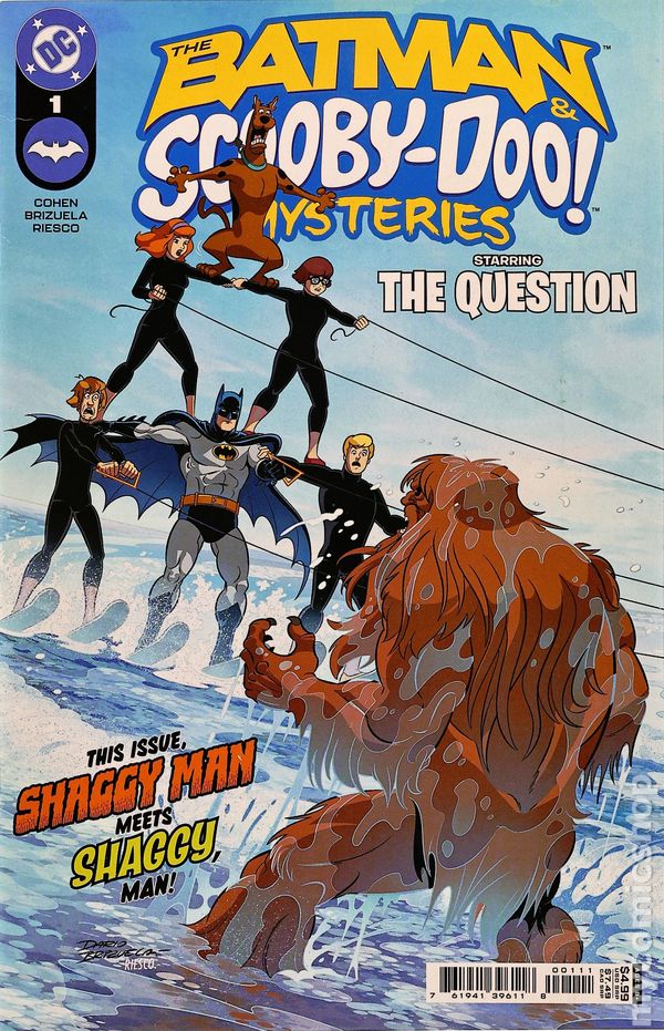 2025 Reissue. Written by Ivan Cohen. Art and Cover by Dario Brizuela. An unexpected guest star helps Batman and Mystery Inc. face one of the Justice Leagues strangest foes! While the Shaggy Man menaces Scooby and friends (including Shaggy, man) at a seaside resort, only Renee Montoya, a.k.a. the Question, may have the answer to who sent the creature…and why! 32 pages, full color. Rated E Cover price $4.99.