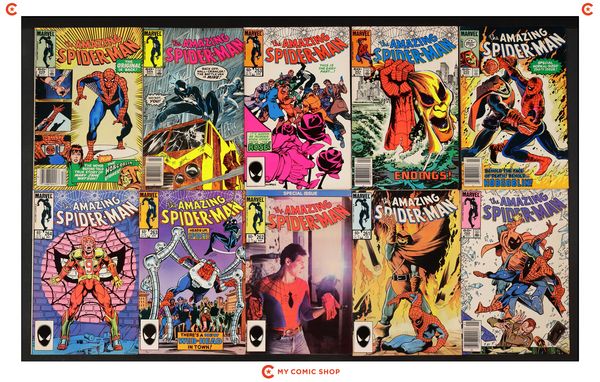 Issues 250N, 251N, 253, 254N, 259N, 260N, 261-264 of Amazing Spider-Man (1963 1st Series). Most will grade in the VG to FN/VF range.