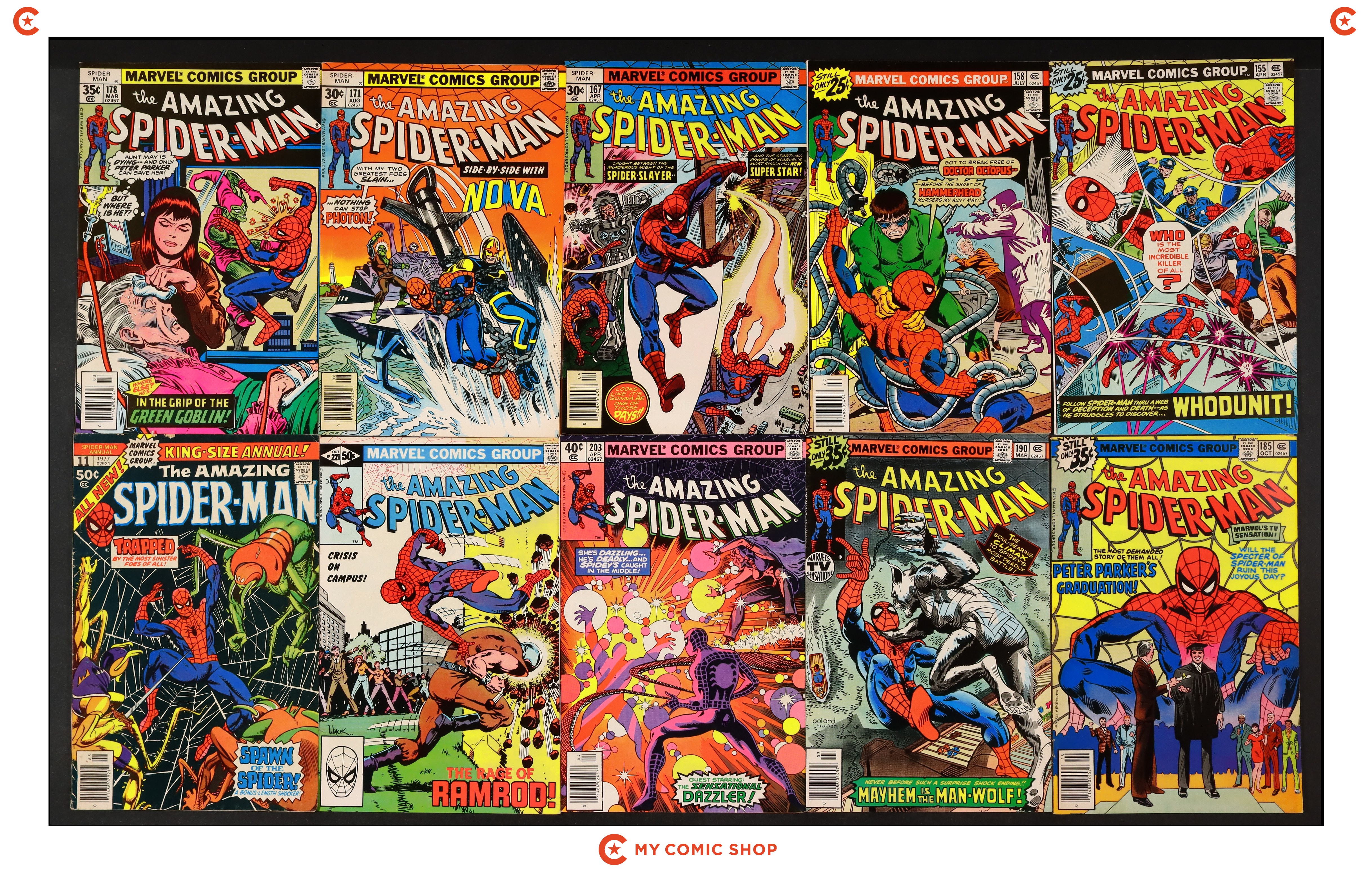Issues 155, 158, 167, 171, 178, 185, 190, 203N, 221 and Annual 11 of Amazing Spider-Man (1963 1st Series). Most will grade in the VG/FN to VF- range.
