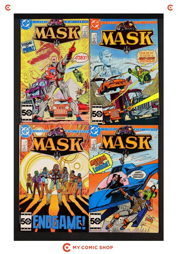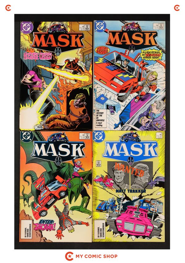 Issues 1-4 of MASK (1985 1st Series DC), and issues 1D, 2 of MASK (1987 2nd Series DC). Most will grade in the FN to VF range.