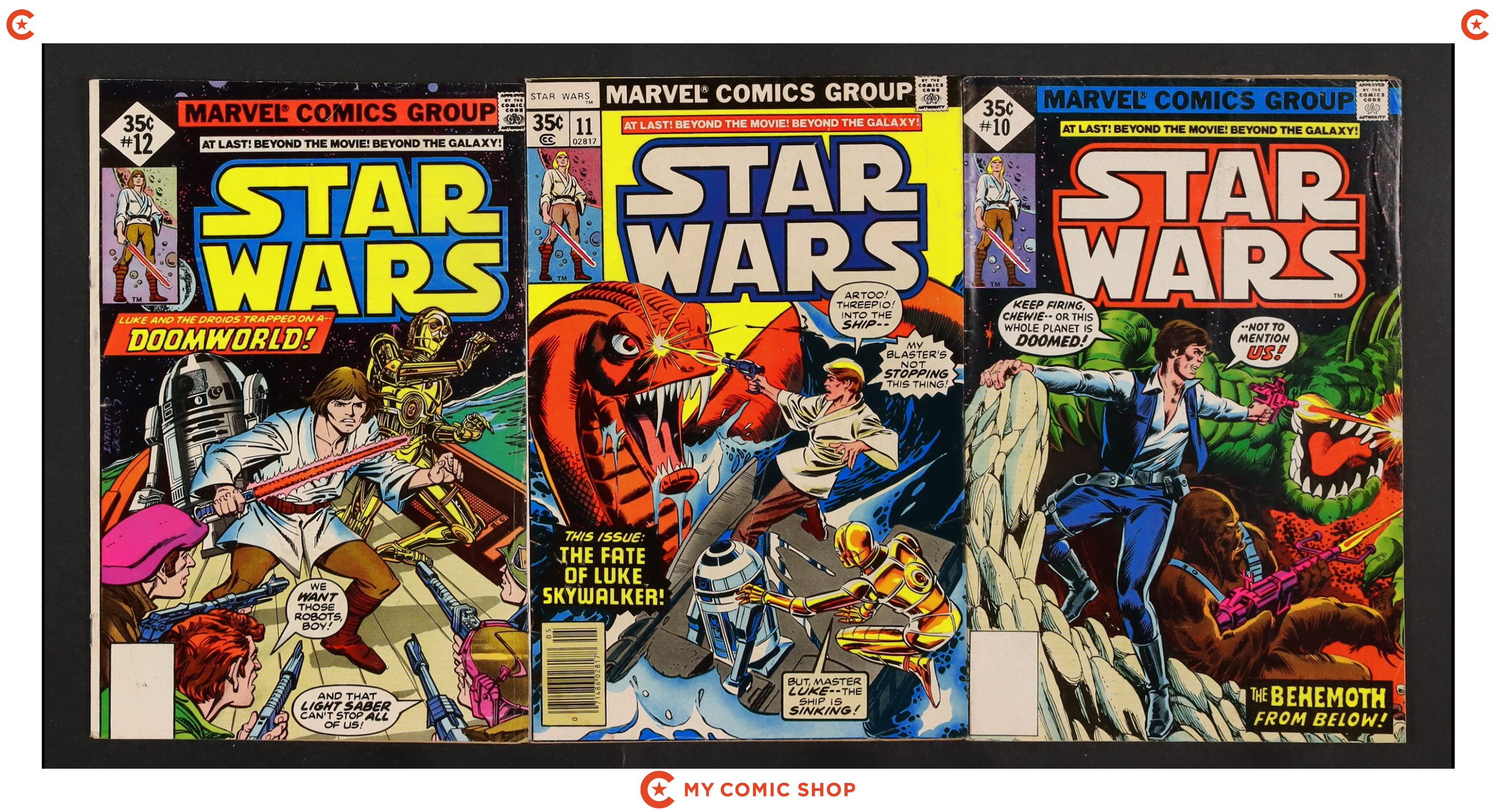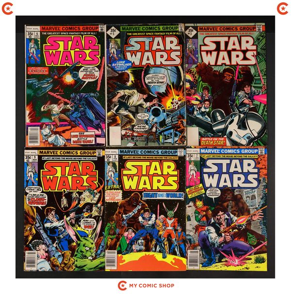 Issues 3WHITMAN, 5WHITMAN, 6-9, 10WHITMAN, 11, 12WHITMAN of Star Wars (1977 Marvel). Most will grade in the GD- to VG+ range.