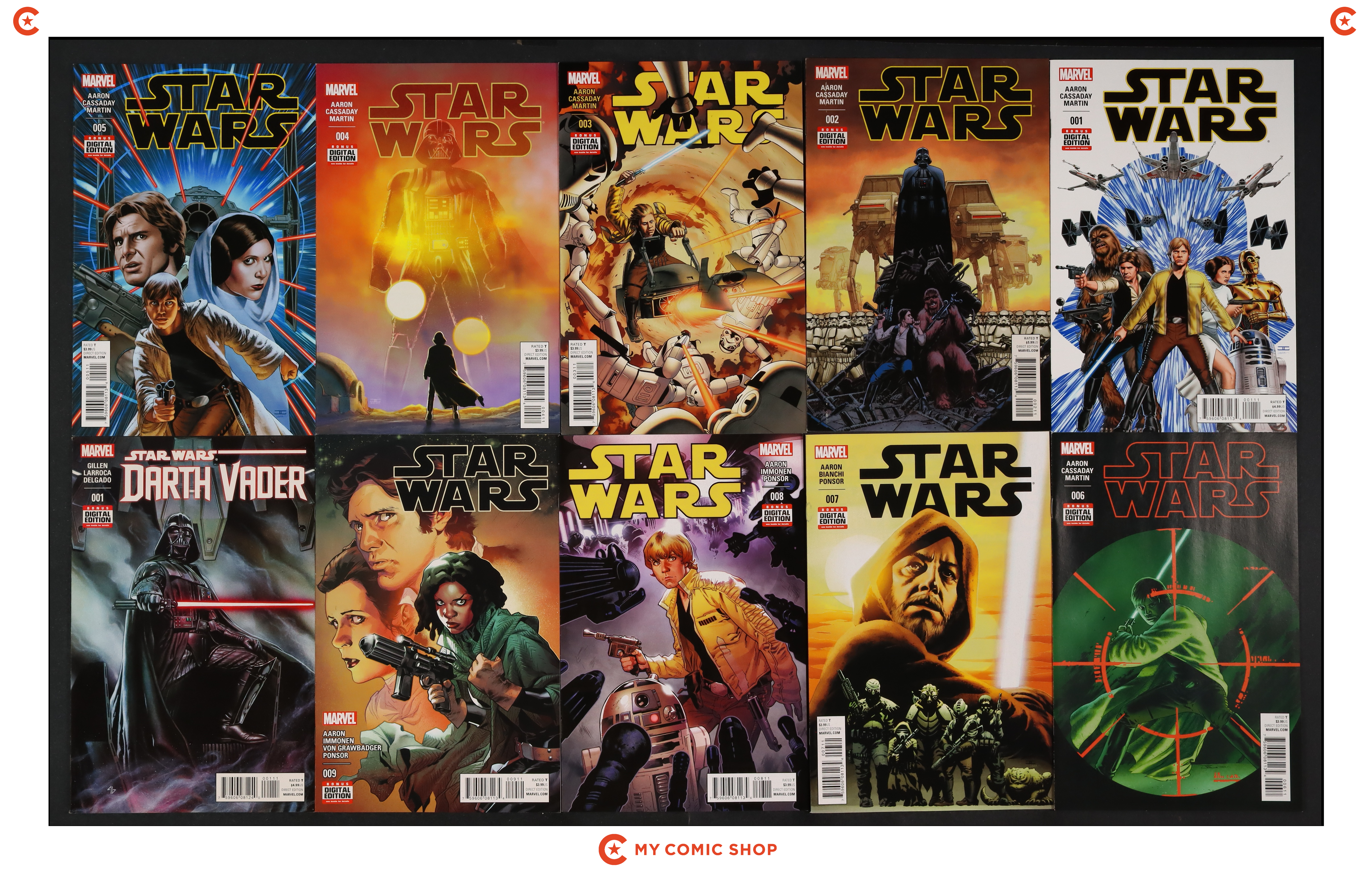 Issues 1A-9A of Star Wars (2015 Marvel); and Star Wars Darth Vader (2015 Marvel) 1A. Most will grade in the VF+ to NM range.