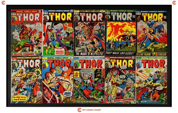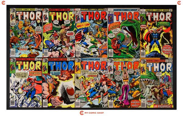 Issues 251-260 of Thor (1962 Marvel 1st Series Journey Into Mystery). Most will grade in the FN to VG range.