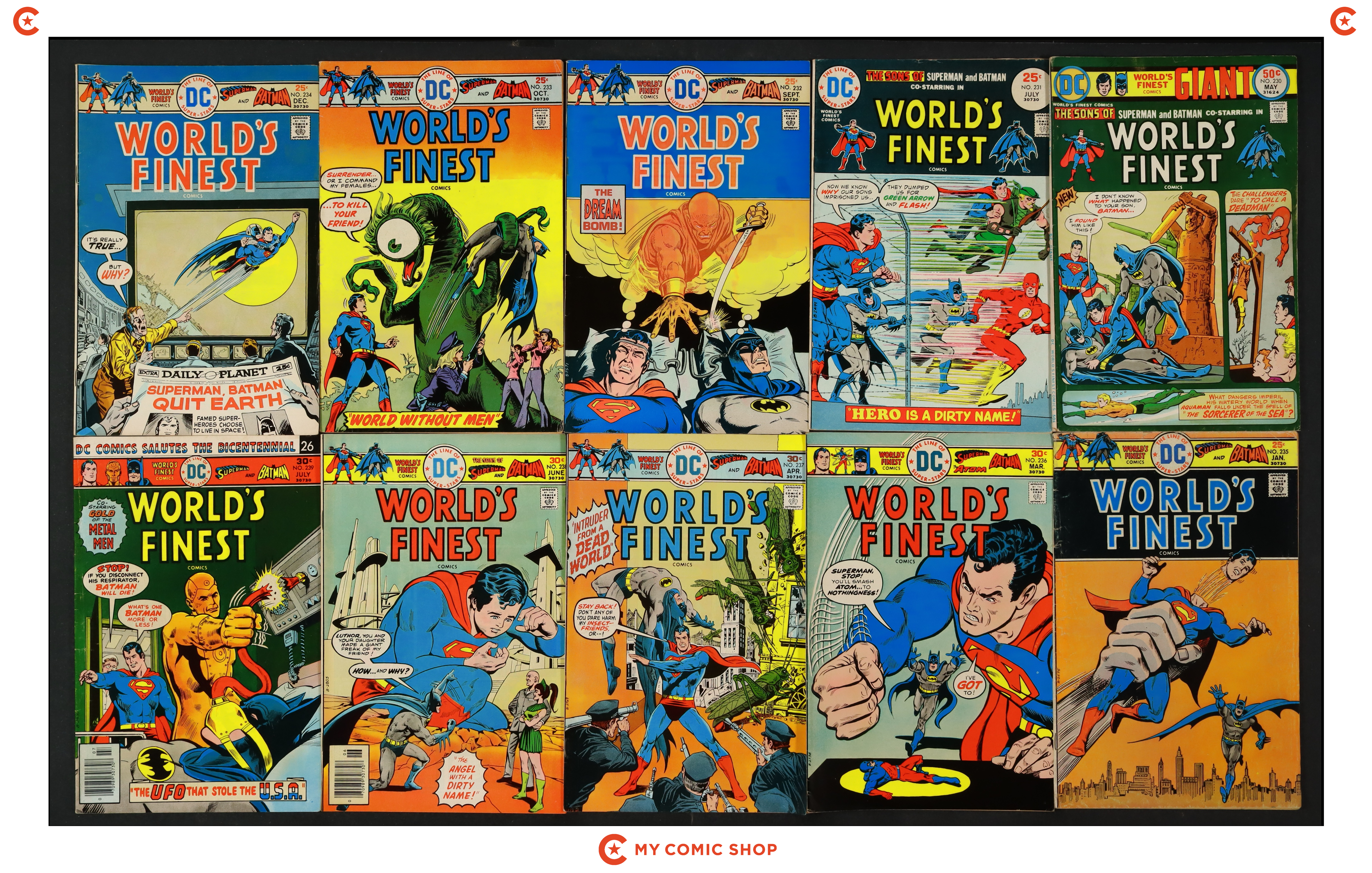 Issues 230-239 of World's Finest (1941). Most will grade in the VG to FN range with #234 grading GD.