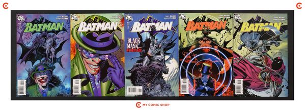 Issues 610, 611, 614, 616, 617, 619A, 620-627, 629, and 630 of Batman (1940). Most will grade in the VF to FN range.
