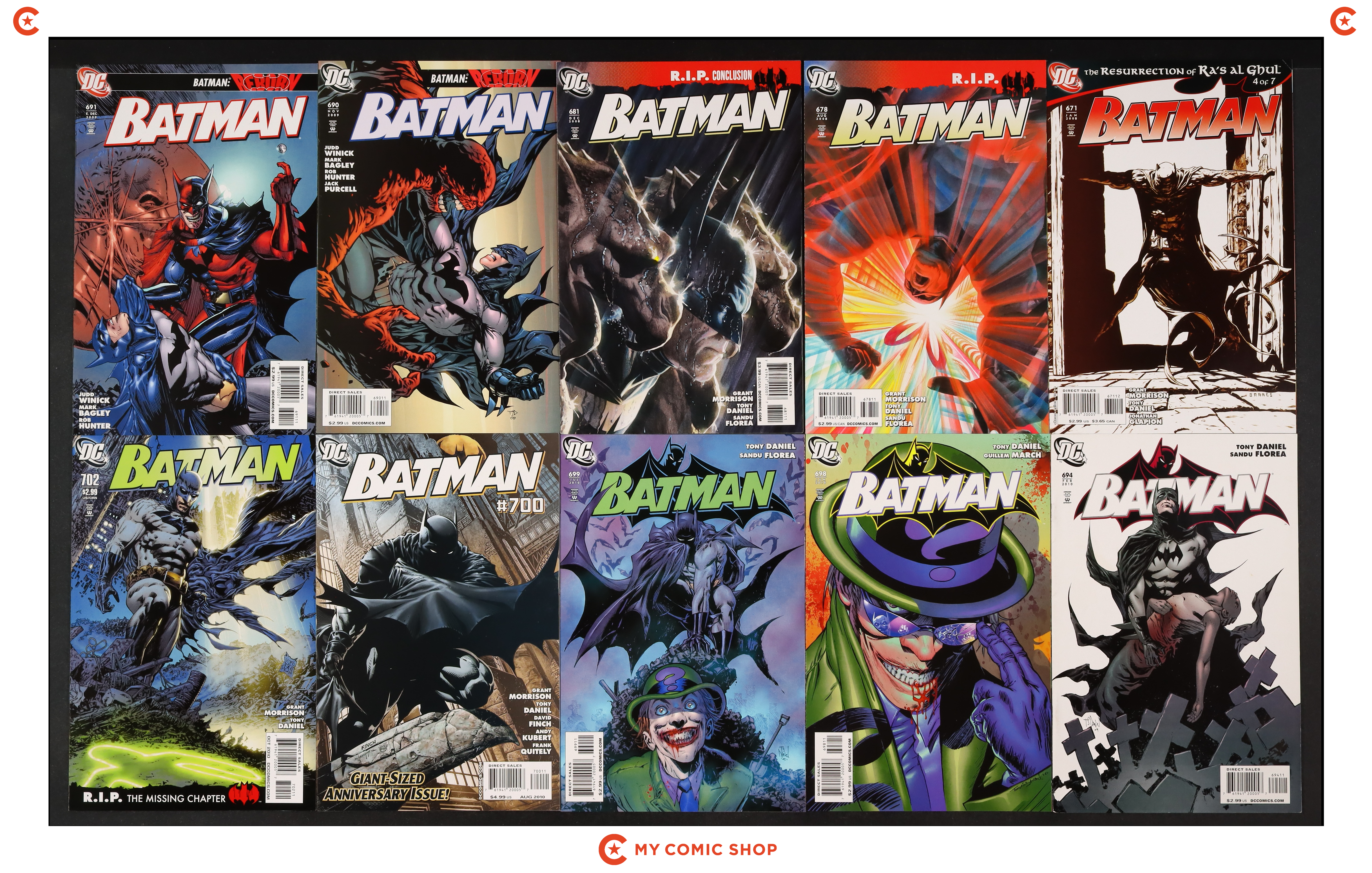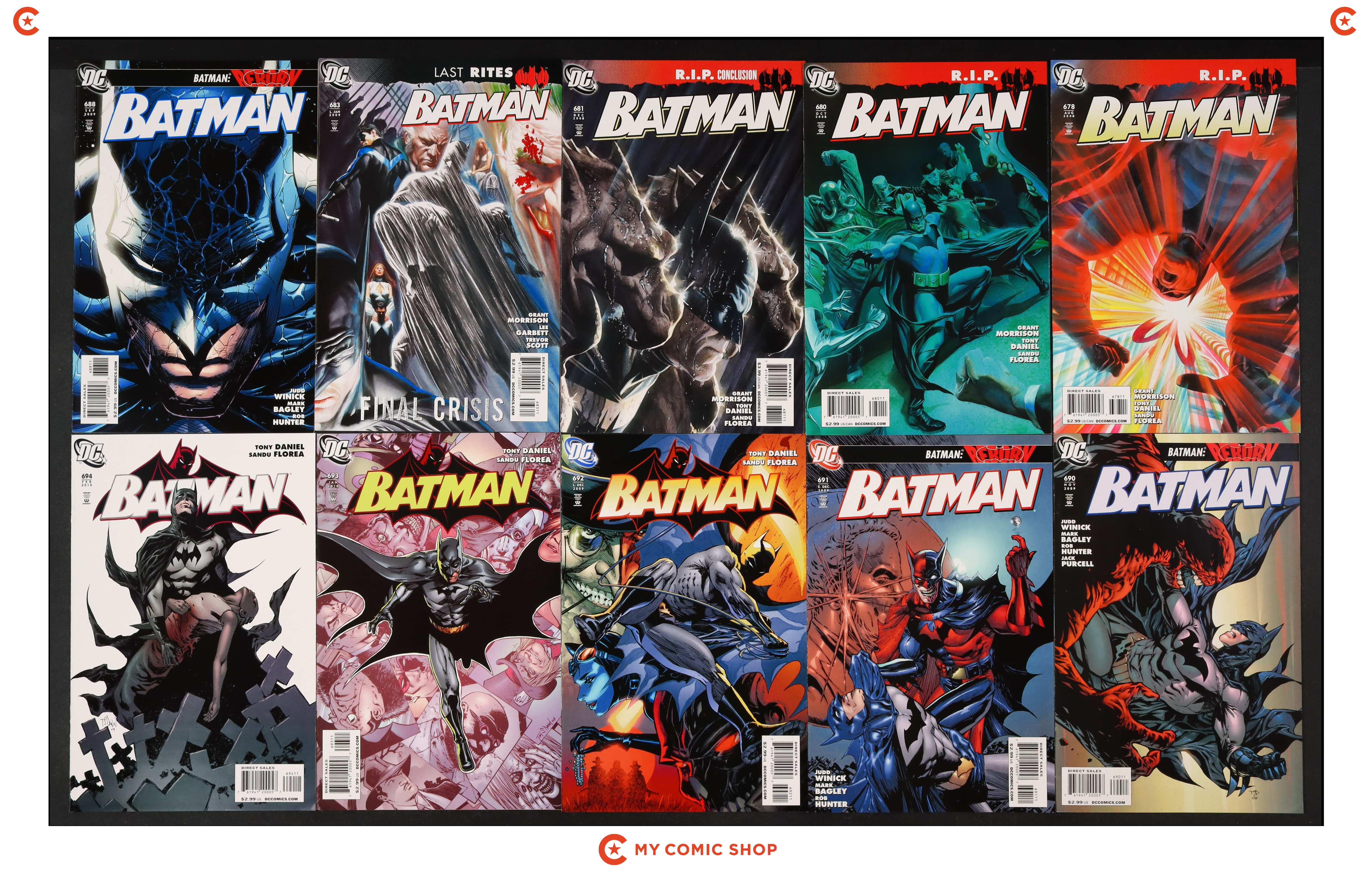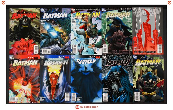 Issues 678A, 680A, 681A, 683A, 688, and 690-699 of Batman (1940). Most will grade in the VF to FN range.