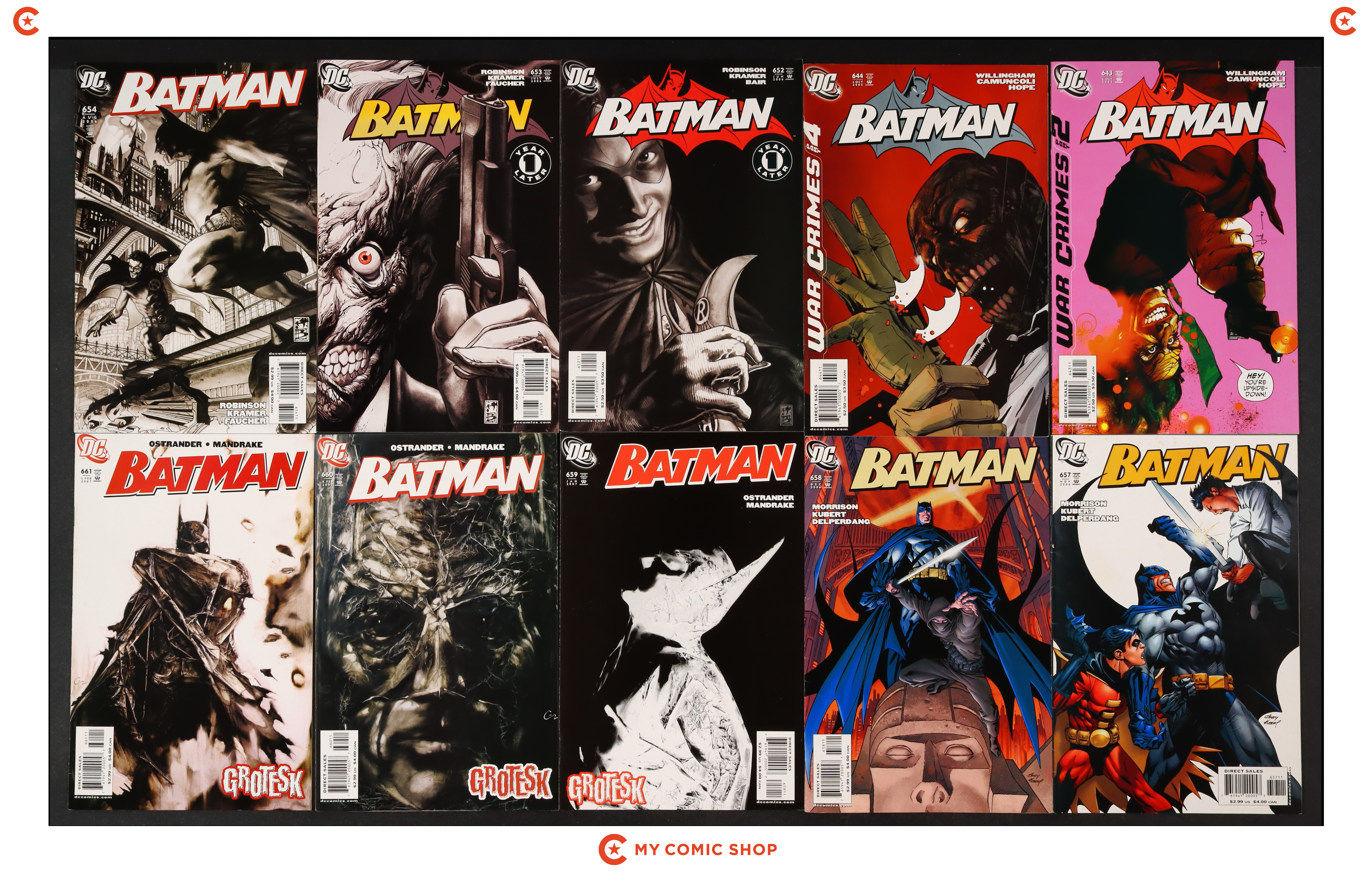 Issues 620, 633, 642-644, 647, 649, 651A, 652A, 653, 654, and 656-658 of Batman (1940). Most will grade in the VF to FN+ range.