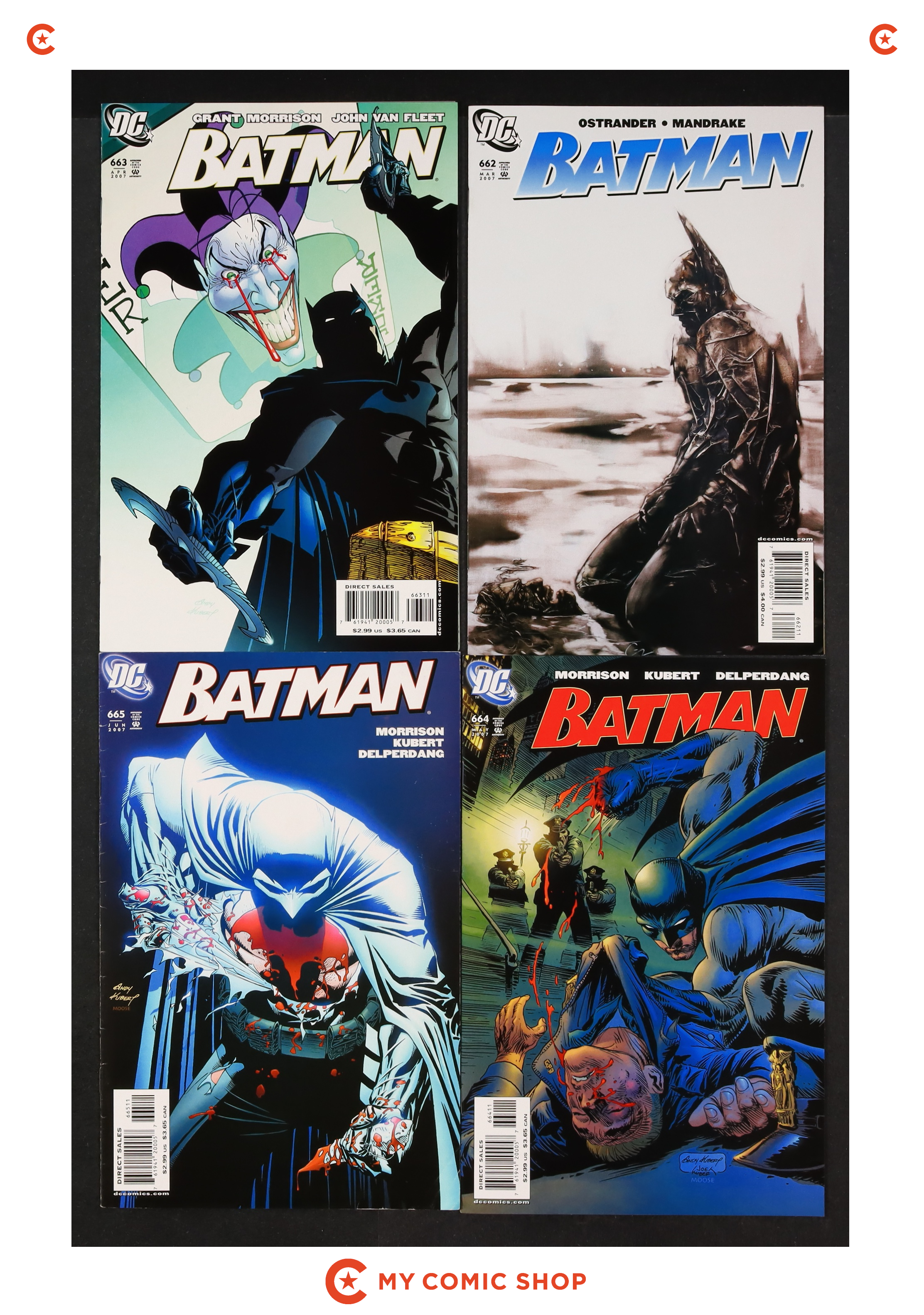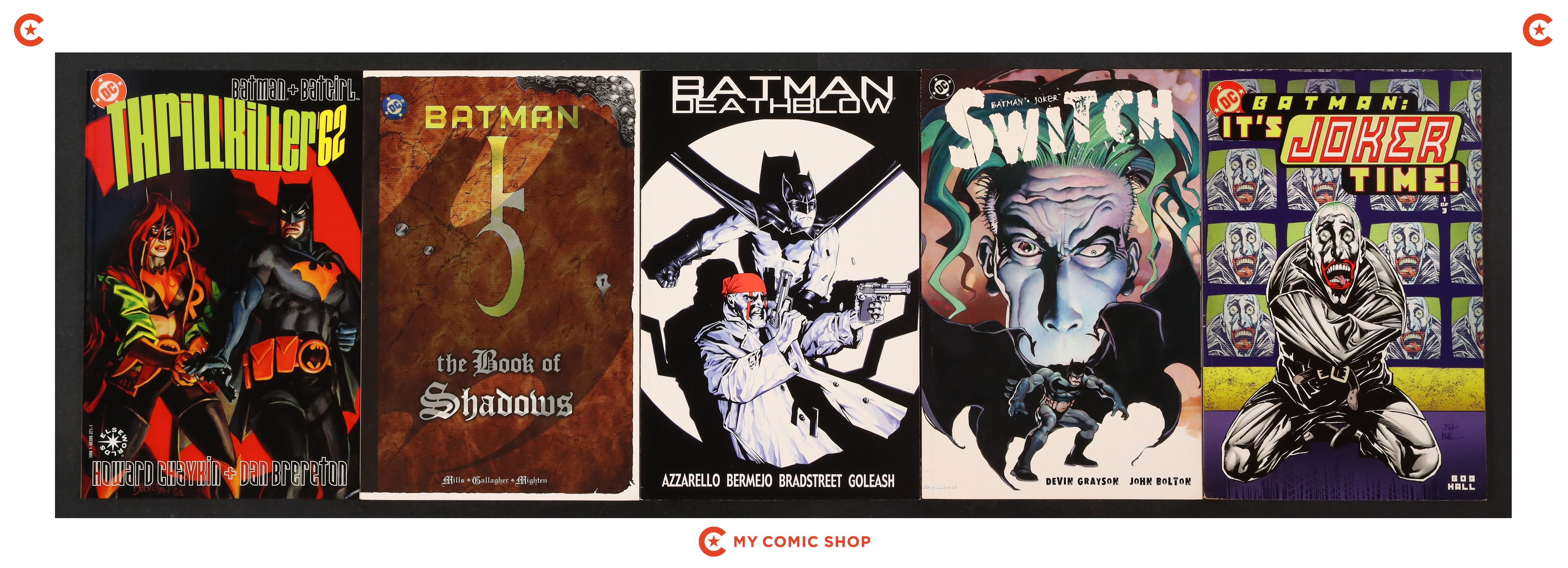 Issues 581-584, 599-601, 603, and 606 of Batman (1940); 4 of Batman Haunted Gotham (1999); 1 of Batman It's Joker Time (2000); 0 of Batman Joker Switch (2003); 1 of Batman Deathblow After the Fire (2002); 1 of Batman The Book of Shadows (1999); and 1 of Thrillkiller '62 (1998). Most will grade in the VF to FN range with #581 of Batman grading VG.