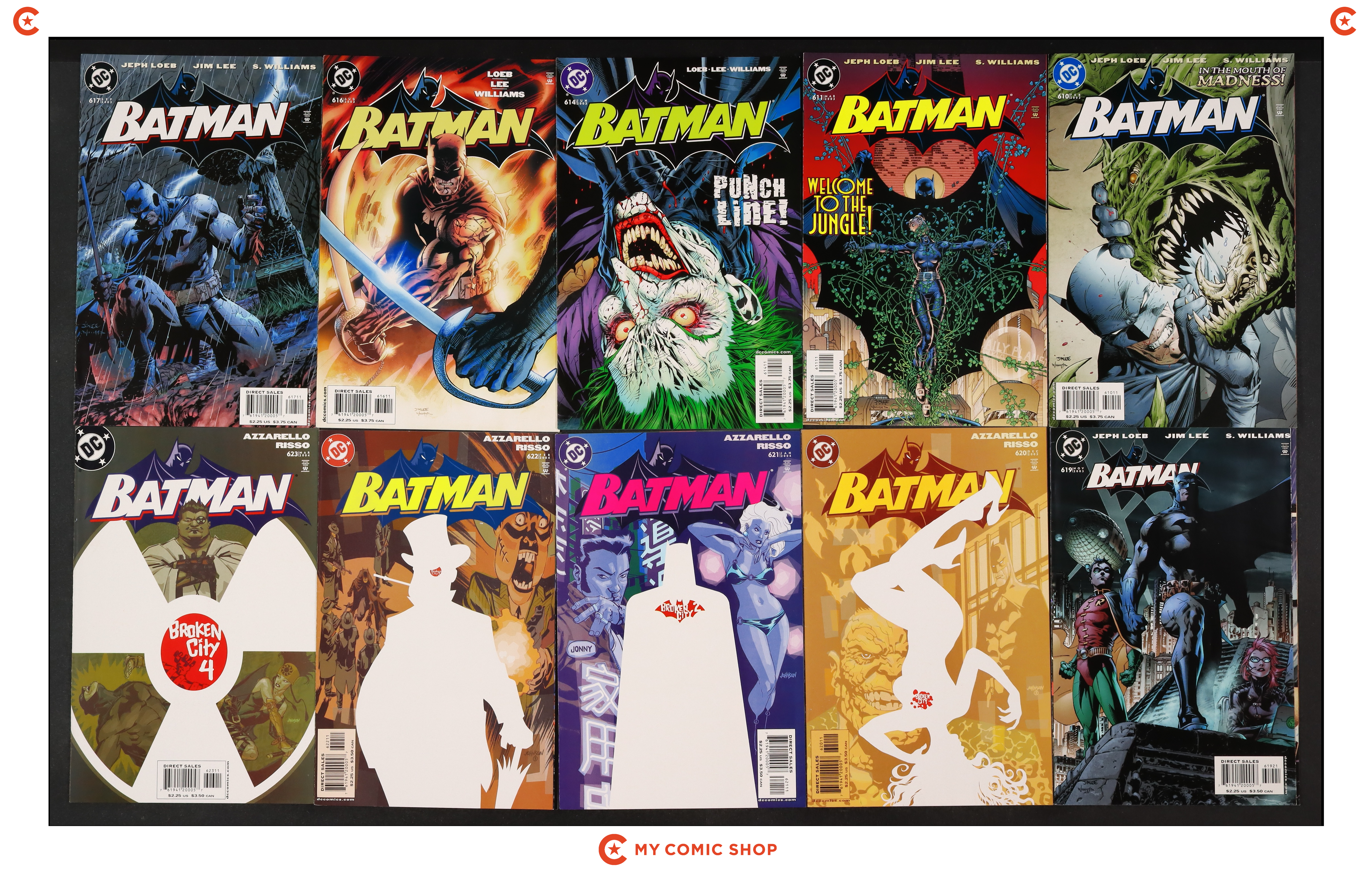 Issues 617, 620, 621, 623-625, 627, 633, and 640-643 of Batman (1940); and 0 and 1 of Batman No Man's Land (1999). Most will grade in the VF to FN+ range.