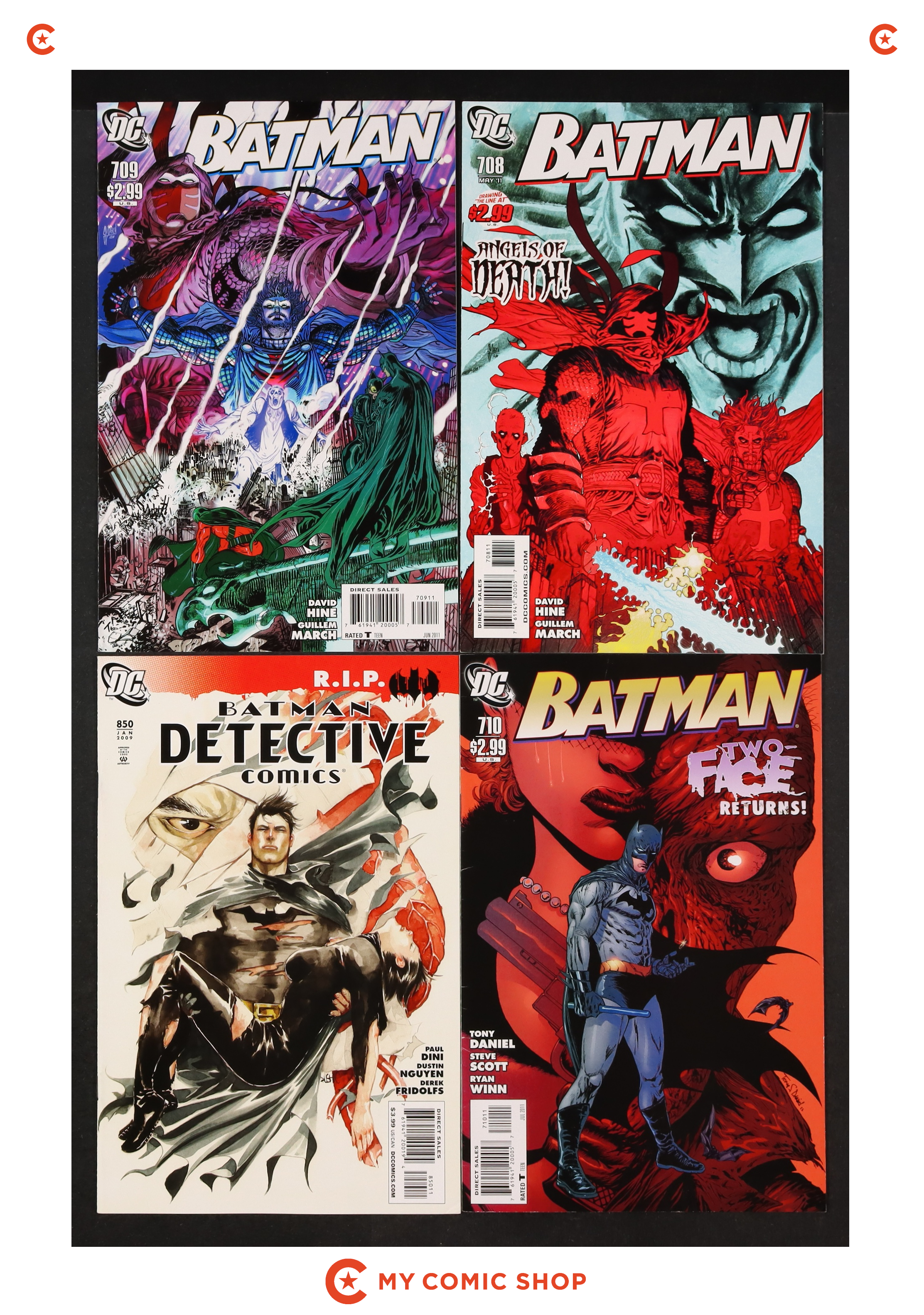 Issues 671B, 678A, 681A, 690, 691, 694, 698, 699, 700A, 702, and 708-710 of Batman (1940); and 850 of Detective Comics (1937 1st Series). Most will grade in the VF range with a few grading FN.