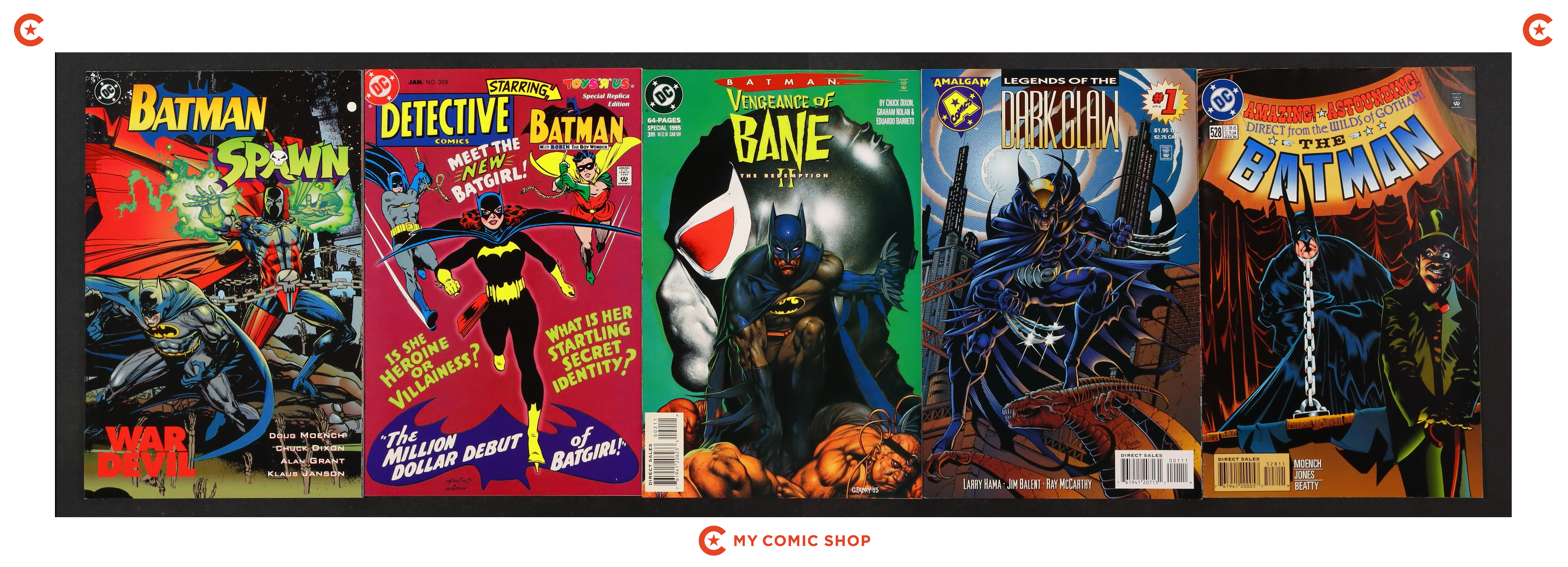 Issues 500B, 502, 508, 509, 512, 518-521, 523, and 528 of Batman (1940); 1 of Legends of the Dark Claw (1996 Marvel/DC Amalgam); 1 of Batman Vengeance of Bane II The Redemption (1995); 359 of Detective Comics Toys R Us Special (1997); and 1 of Batman Spawn War Devil (1994). Most will grade in the VF to FN range.