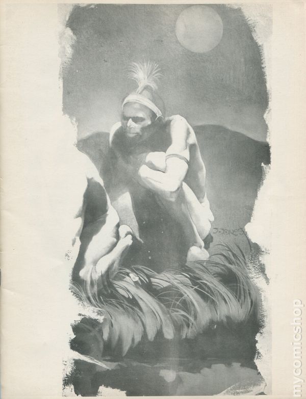 1st Printing. Limited print run of 1,000. Conan the Fearless cover by Frank Frazetta. Interviews with Mike Kaluta, Vaughn Bode, John Severin, and Jeff Jones. "Doctor Demono" & "Dakar" comic strips by Jim Miller, Cheech Wizard in "The Race to the Moon" comic strip by Vaughn Bode, and "Vampires of the Mind" comic strip by Mike Cody and Steve Hickman, plus more. Squarebound paper cover, 8 1/2-in. x 11-in., 70 pg, B&W. Cover price $0.35.