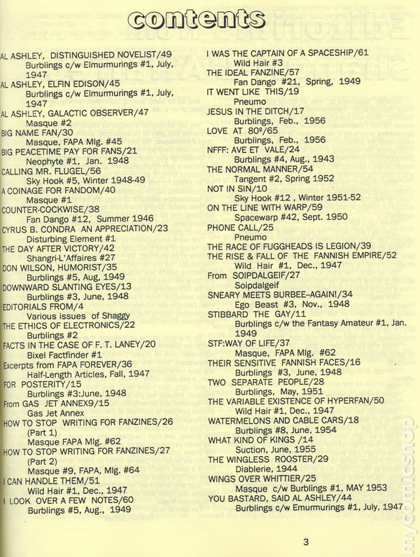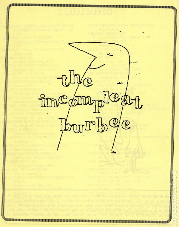 Second Edition. Originally published in 1958, this edition was produced by Arnie and Joyce Katz. Collects the fan writings of Charles Edward Burbee, published for his birthday party on April 26, 1958. 8.5" x 11", 68 pages, B&W.