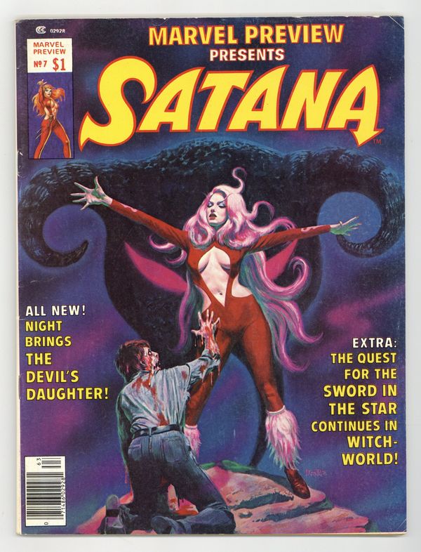 Starts Jan 3 1st app. Rocket Raccoon. Cover art by Bob Larkin; Satana illo by Vicente Alcazar; Why a Devil's Daughter? article by John Warner; The Damnation Waltz Satana story by Chris Claremont, art by Vicente Alcazar; Part II: La Simphonie Diable—The Devil's Symphony Satana story by Claremont, art by Alcazar; From the Devil, a Daughter article by Claremont, art by Michael Netzer and Esteban Maroto; Just a Little Over a Year Ago… article by Bill Mantlo, art by Terry Austin; and The Sword in the Star!: Stave 2: Witchworld! story by Mantlo, 1st professional art by Keith Giffen. Cover price $1.00.