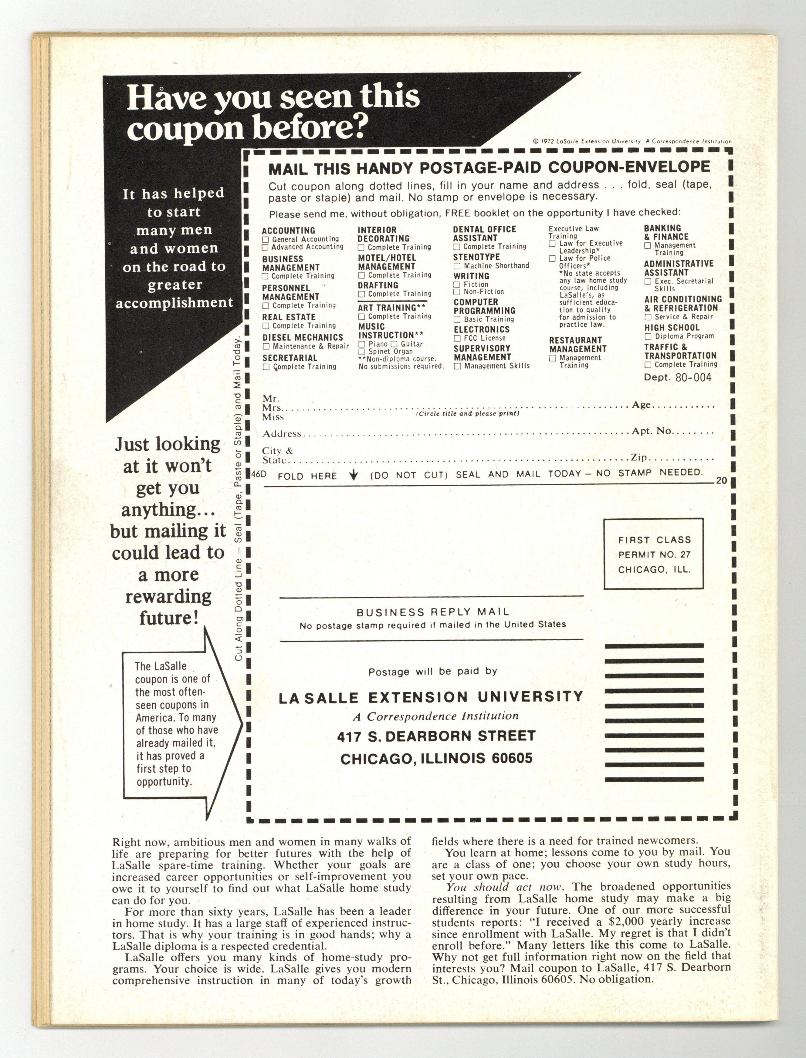 Starts Jan 26 Cover art by Gray Morrow; Death Sentence first origin story for the Punisher written by Gerry Conway, art by Tony DeZuniga; The Executioner Speaks Out! text article by David Anthony Kraft; The Power Broker Resolution! starring Dominic Fortune, written by Len Wein, art by Howard Chaykin; Thor promo ad with art by Virgilio Redondo; and an ad for all the Marvel magazines. 84 pgs. Cover price $1.00.