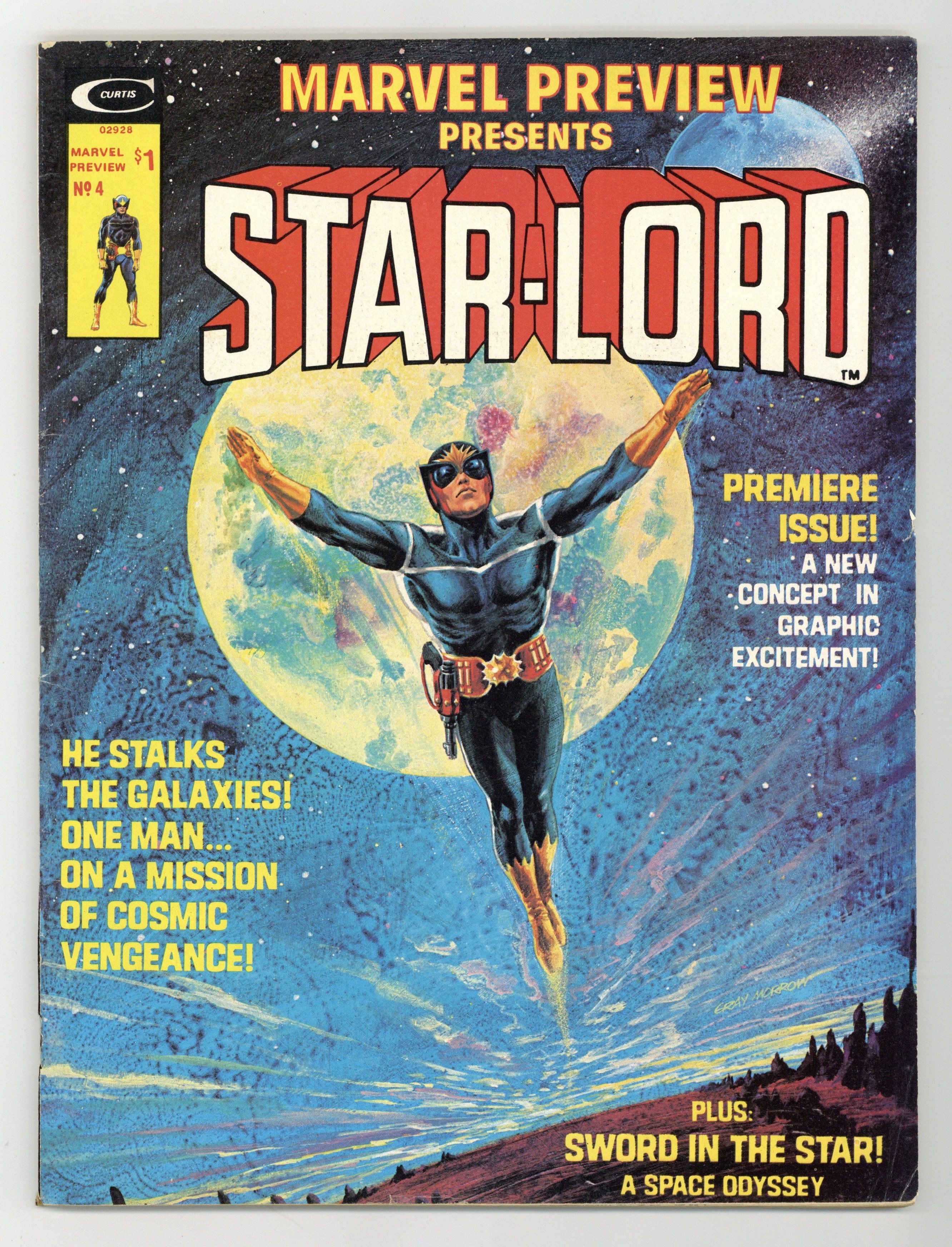 Starts Jan 26 1st app. and origin Star-Lord. Cover art by Gray Morrow; Star-Lord illo by Bernie Wrightson; I Say It's Space Opera and I Say to Hell with It article by Archie Goodwin, pencils by John Fuller, inks by Rick Bryant; The Star-Lord article by Steve Englehart, art by Steve Gan; Star-Lord First House: Earth! written by Englehart, art by Steve Gan and Bob McLeod; Introduction…Sword in the Star article written by Edward S. Barkan and Bill Mantlo, pencils by Keith Giffen, inks by McLeod; The Sword in the Star! Stave 1: Alas the Seeds of Man! written by Bill Mantlo, pencils by Ed Hannigan, inks by P. Craig Russell and Rick Bryant; and Sherlock Holmes promo ad with art by Frank Thorne. 76 pgs. Cover price $1.00.