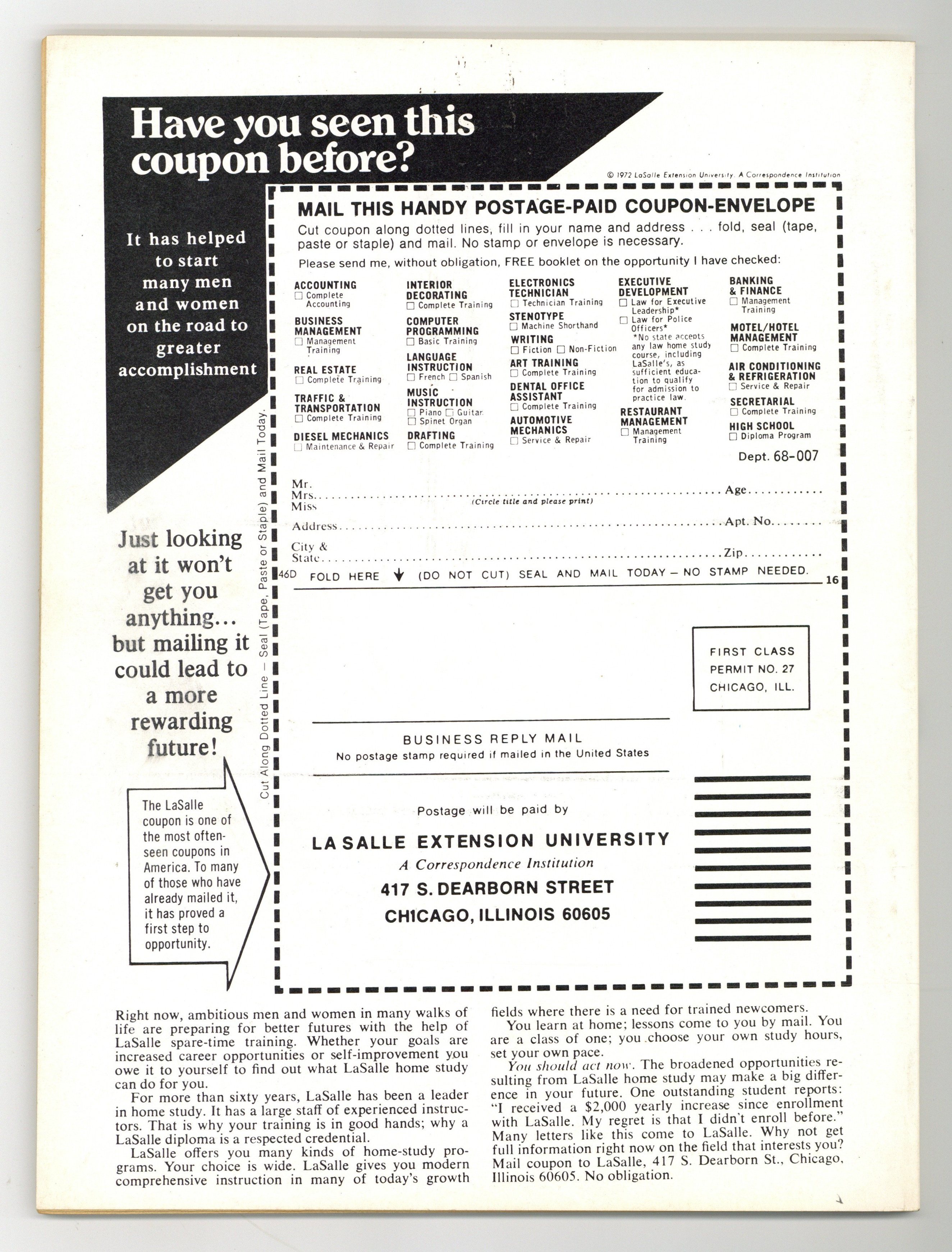 Starts Jan 19 Cover pencils by Rich Buckler, inks by Mike Esposito. Season of the Witch-Woman, script by Gary Friedrich, pencils by Tom Sutton, inks by Syd Shores; Witch-Woman reveals her origins to Ghost Rider, who she easily defeats; Satan forces Witch-Woman to turn her own Satanic power against herself. Continued in Ghost Rider (1973 series) #1. 36 pages, full color. Cover price $0.20.