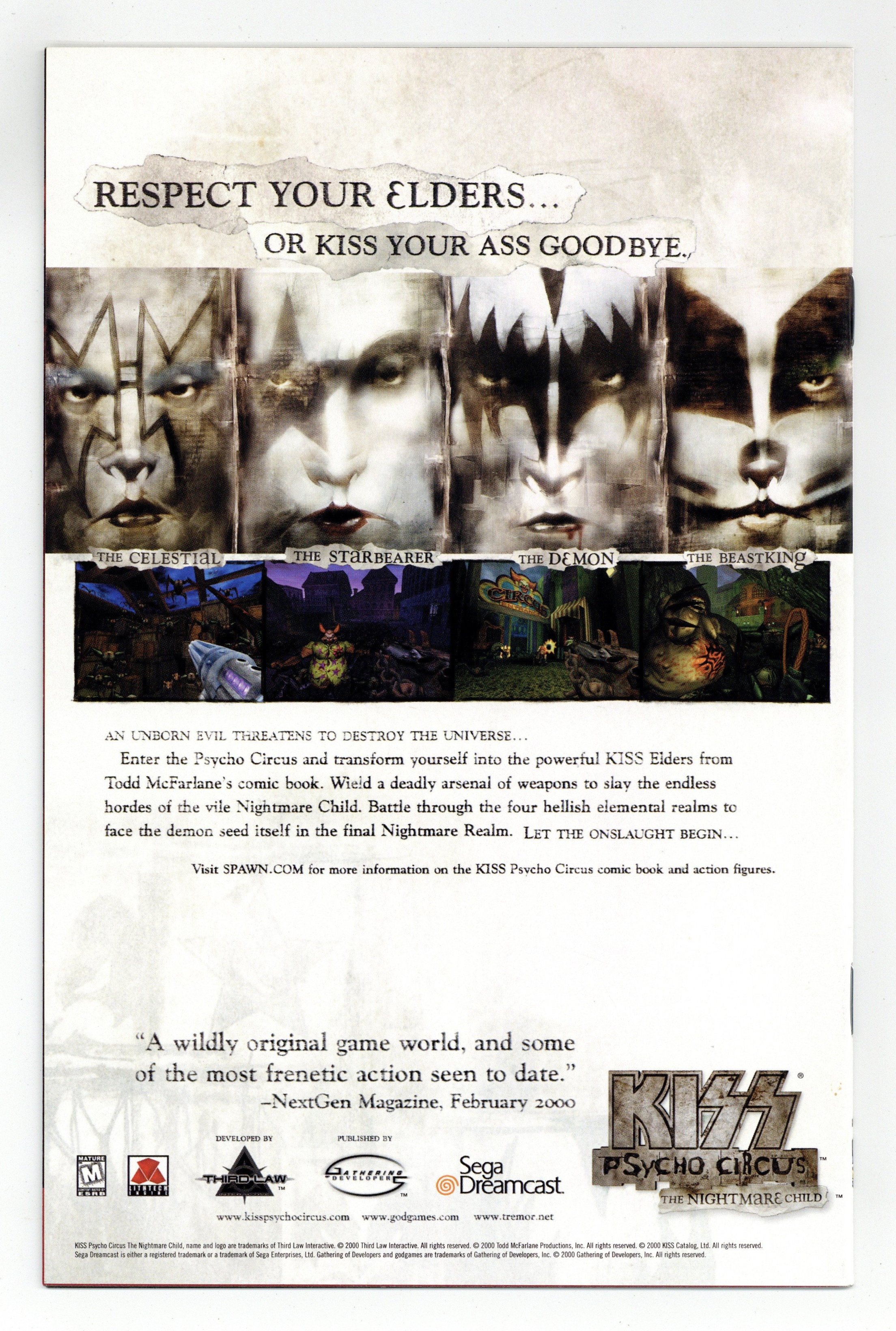 Starts Jan 19 Full color, 32 pages written by BRIAN HOLGUIN & TODD McFARLANE art by ANGEL MEDINA & DANNY MIKI cover by GREG CAPULLO & TODD McFARLANE CONCEPT: Al Simmons, once the U.S. government's greatest soldier and most effective assassin, was mercilessly executed by his own men. Resurrected in a flawed agreement with the powers of darkness, Simmons was reborn as a creature from the depths of Hell. Disfigured, homeless and alone, the warrior now known as Spawn wanders the shadowy alleys of New York City in search of his past life. THIS ISSUE: "Hellbound," Part 1?What would you do to save a loved one from a fate beyond imagining? Would you brave the perils of Hell itself? Would you take up the burden of an ancient curse and bear it on your shoulders? Would you break a sacred trust, knowing it could never be restored? While Spawn struggles to recover from the events of "1000 Clowns," Nyx faces these questions and more. Her decision will shock you. Cover price $2.50.