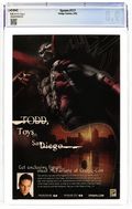 Direct Edition. (C) Todd McFarlane and Brian Holguin (P) Angel Medina (I) Danny Miki (Color) Brian Holguin (Cover) Greg Capullo"The Kingdom, Part Vl." LANDMARK SPAWN ISSUE. The morning after... The Night of the Cleansing -- when the Children of the Kingdom rain harsh judgment down upon the city of New York -- has come and gone. Last issue, Spawn stood alone against an avenging army of 777 supernatural assassins. Now, see who is left standing and who is lost forever to the darkness. Don't miss the stunning revelations and unexpected twists of this landmark issue!FC, 32pg Cover price $2.50.