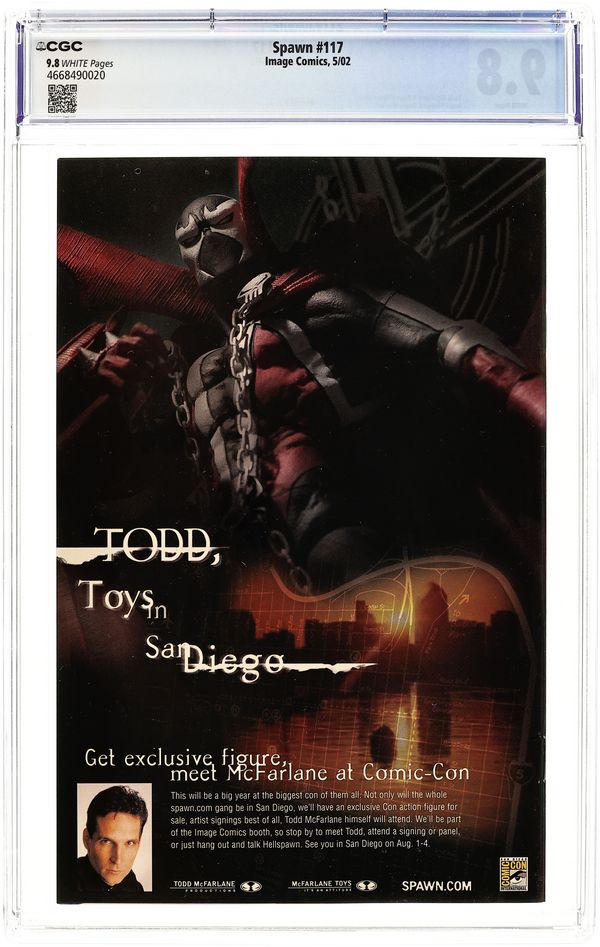 (S) Todd McFarlane and Brian Holguin (P) Angel Medina (I) Danny Miki. (Cover) Greg Capullo (Color) Brian Haberlin "Cautionary Tales II." A man who collects specialized historical artifacts comes across the find of a lifetime: a gruesome souvenir from Nazi Germany's Third Reich. But owning a dark piece of history bears a high price, including restless ghosts, a gypsy curse and a visit from the HellSpawn. Don't miss "Remains", an unforgettable, single-issue story about retribution, redemption and the human face of true horror. FC, 32pg Cover price $2.50.