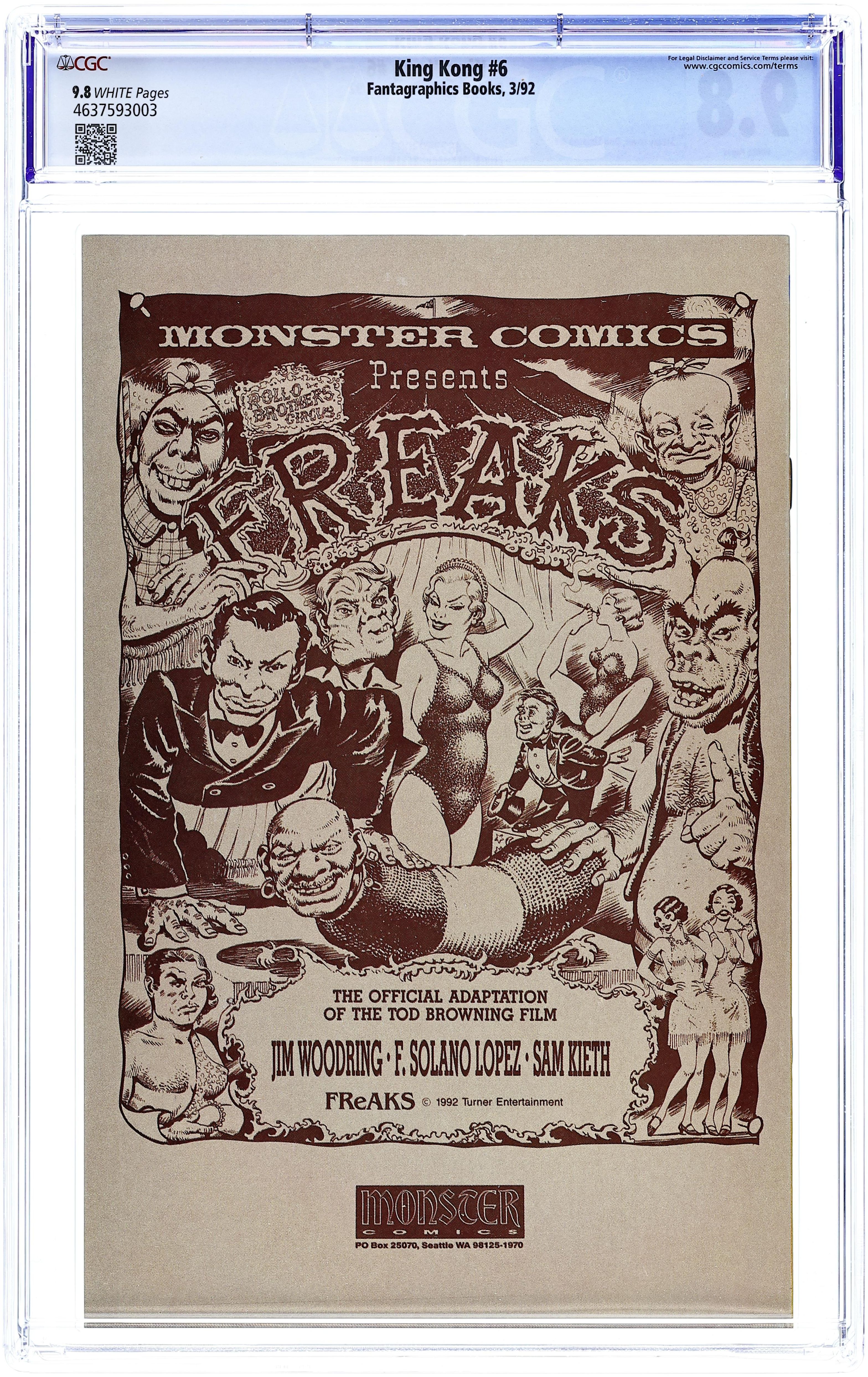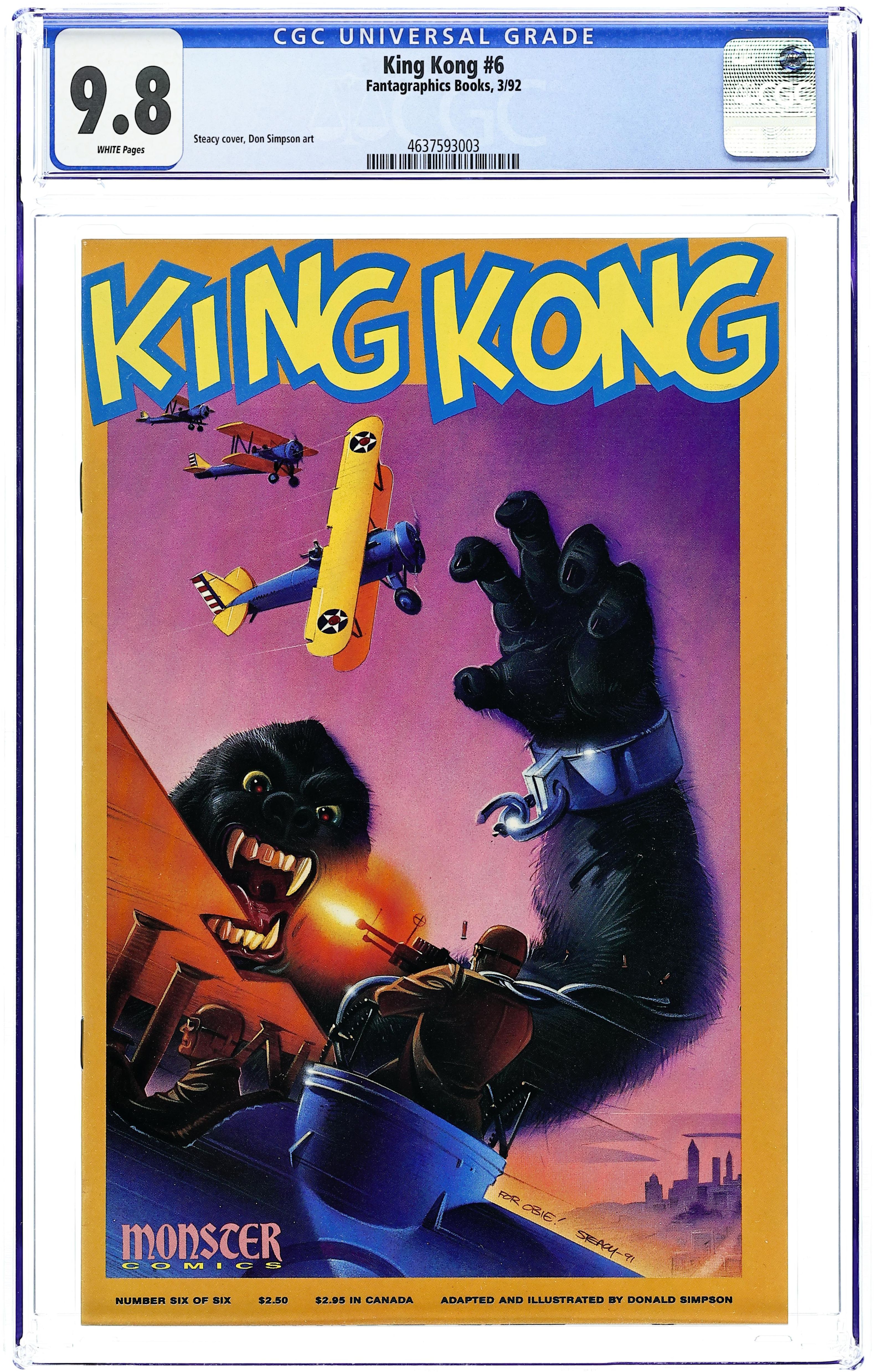 Cover by Ken Steacy. Stories and art by Don Simpson. The Eighth Wonder of the World. Fantagraphics' Monster Comics imprint serves up Don Simpson's adaptation of the 1932 King Kong novelization, with eye-catching covers by some great gorilla artists. King Kong makes history in New York, but not the way that Carl Denham had hoped. After retrieving his beloved Ann and stomping Manhattan to the ground, Kong heads for the Empire State Building and a heartbreaking finale. Gorgeous painted cover by legendary artist Ken Steacy. Final issue of the series. 32 pages, B&W. Cover price $2.50.