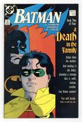 Ends Feb 9 7:32 PM CST Bid History 9 bids Current Bid $28 Your Secret Max Bid If you'd like to bid, please log in or register. First printing. Direct Edition. Cover art by Mike Mignola. "A Death in the Family" part 4 of 4, script by Jim Starlin, pencils by Jim Aparo, inks by Mike DeCarlo; Batman and Superman talk to CIA agent Ralph Bundy about the Joker's diplomatic status; The agent tries to get Batman to leave the Joker alone; Batman goes to the Joker's hotel room; The Joker confirms that he killed Jason; The Joker pulls a gun, but Batman is already gone; At the UN the Joker tries to poison the audience; Fortunately, Superman sucks up all the poison and flies out of the room to release it; The Joker activates bombs; Batman pursues him. NOTE: Most issues from 397-432 were reprinted in 1989 and sold in multipacks. These 2nd and 3rd prints have back cover ads dated 1989. 36 Pages, Full Color. Cover price $0.75.