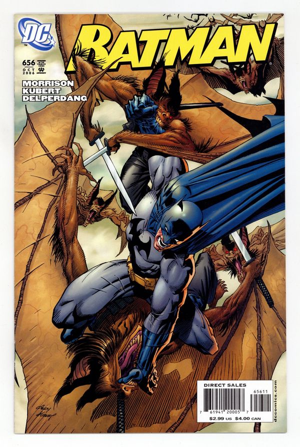 Starts Feb 16 Direct Edition. Written by Grant Morrison. Art by Andy Kubert & Jesse Delperdang. Cover by Kubert. What do you get when you add one Batman, fifty Ninja Man-Bats and the British Prime Minister's wife? Welcome to a glittering night of mayhem among the rich and famous, as Batman faces down a whole army of winged horrors in a no-holds barred, bone-crunching superbrawl among the treasures of London's Pop Art museum. And when the Dark Knight's done, an even greater shock awaits, as we finally meet a startling NEW addition to the Batman family in "Man Bats of London," Part 2 of the 4-part "Batman and Son," by comics legends Grant Morrison (ALL STAR SUPERMAN, SEVEN SOLDIERS) and Andy Kubert (Ultimate X-Men, 1602)! 36 Pages, Full Color. Cover price $2.99.