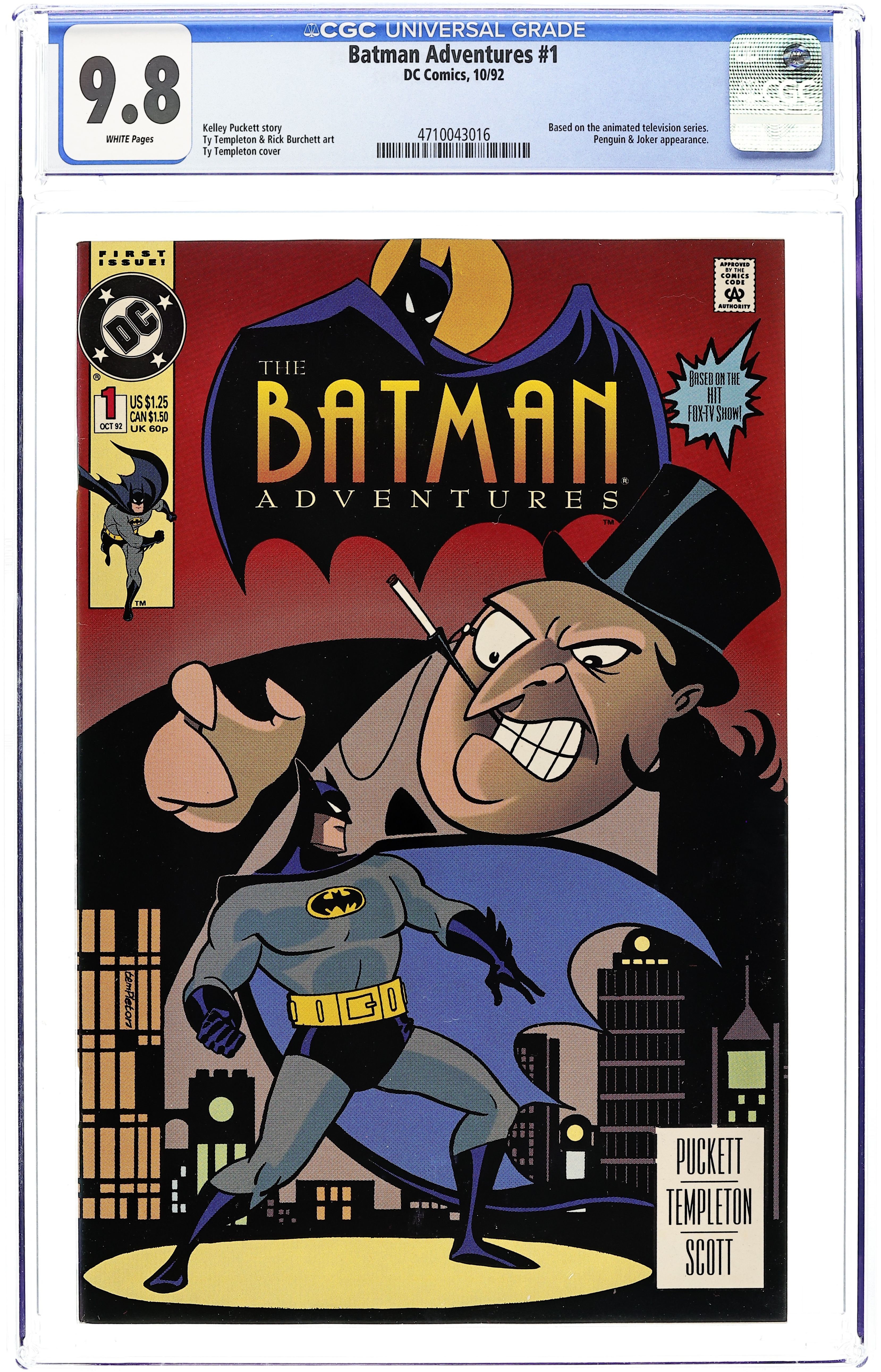 Direct Edition. "Penguin's Big Score." The Penguin gives to charities, but Batman knows something is up. Joke guest-stars. Based on Batman The Animated Series. Script by Kelly Puckett, pencils by Ty Templeton, inks by Rick Burchett. Cover by Templeton. Cover price $1.25.