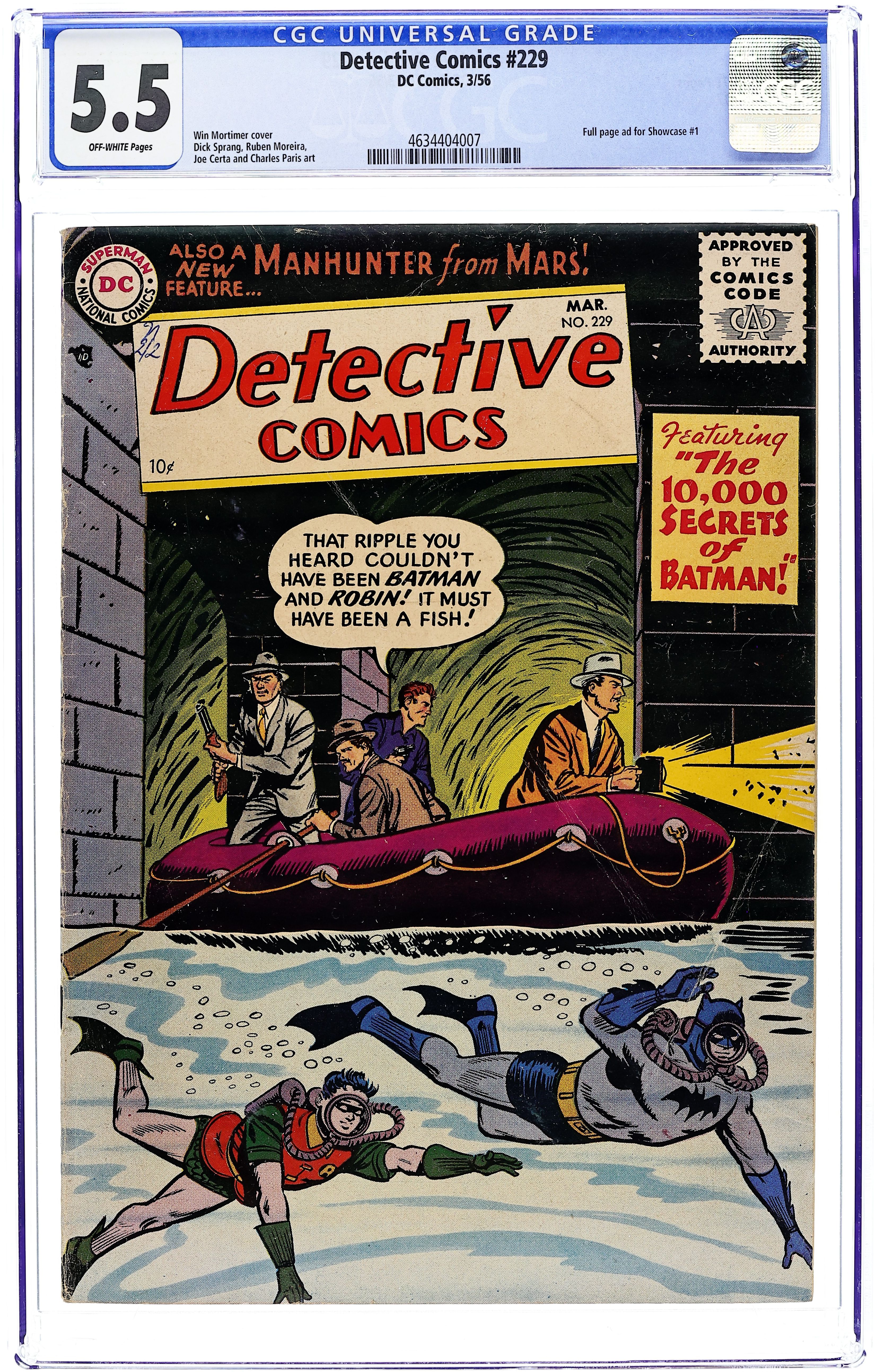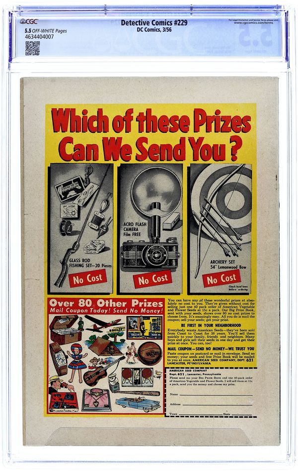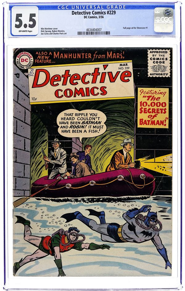 Cover art by Win Mortimer. Welcome, Amigo public service announcement starring Binky, script by Jack Schiff, art by Bob Oksner. Batman the Magician starring Batman and Robin, script by Bill Finger, pencils by Sheldon Moldoff, inks by Charles Paris. Casey the Cop humor page by Henry Boltinoff. The Secret of the Flying Saucers! starring Roy Raymond TV Detective, art by Ruben Moreira. Beware the Sea Serpent! starring Captain Compass, script by Otto Binder, art by Joe Certa. Meet a Killer text article by Jack Miller (as Joseph Macready). Conquerors of Crime starring Mysto Magician Detective, art by Leonard Starr. 44 pgs. $0.10. Cover price $0.10.