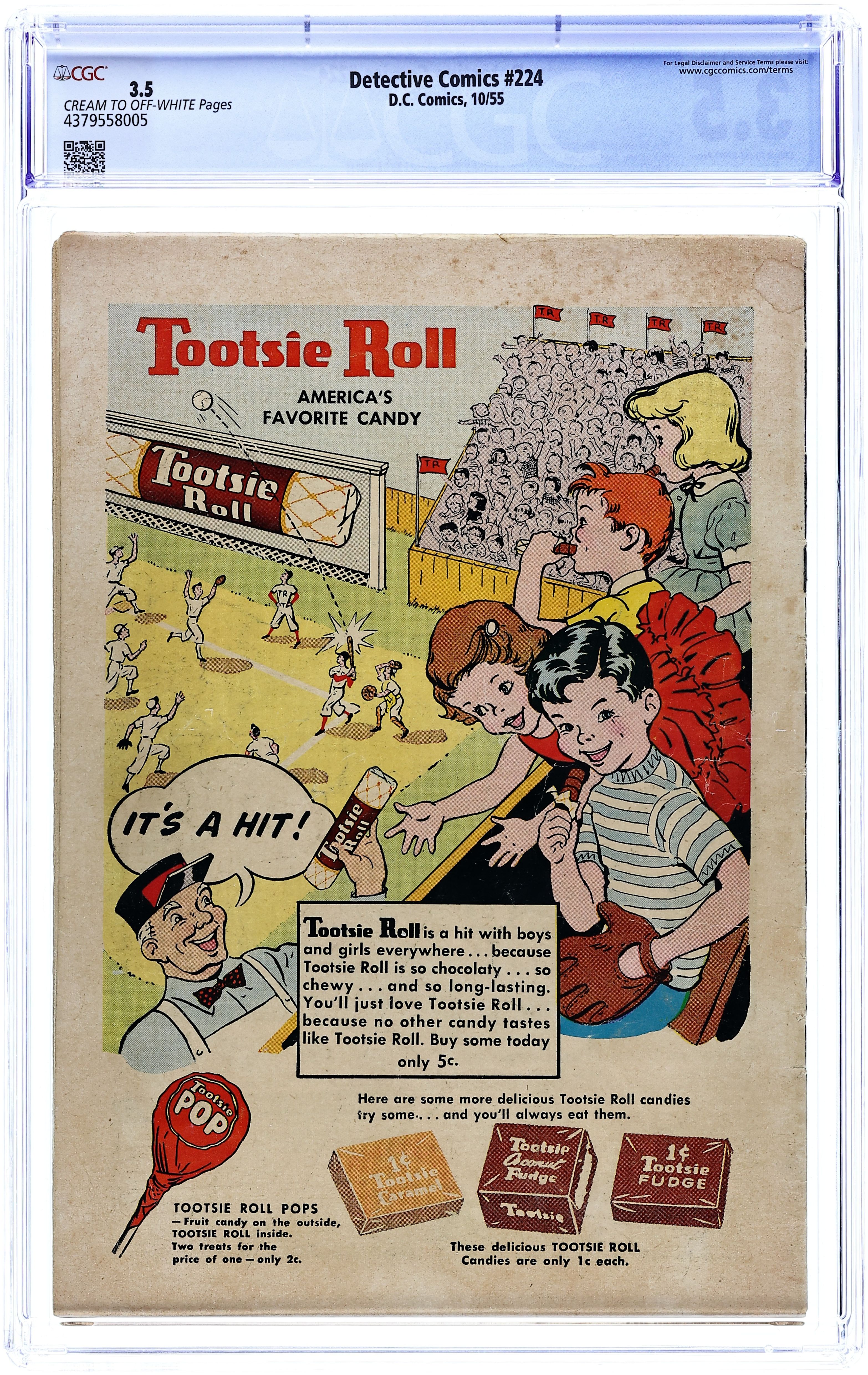 Written by Gardner Fox. Art by Carmine Infantino and Sid Greene. Cover by Carmine Infantino and Murphy Anderson. 1st appearance of the new Batgirl (Barbara Gordon) in The Million Dollar Debut of Batgirl!; Batgirl goes to a costume party dressed as Batgirl; she sees Killer Moth attack Bruce Wayne. Written by Gardner Fox. Art by Murphy Anderson. Riddle of the Sleepytime Taxi!; Ralph Elongated Man Dibny and Sue fall asleep in the back seat of a taxi while going to a costume party; Ralph discovers that crooks criminals are putting passengers to sleep to copy secret documents. Cap's Hobby Hints activity page by Henry Boltinoff. Letter to the editor from comics writer Mark Evanier. 36 pages, full color. $0.12. Cover price $0.12.