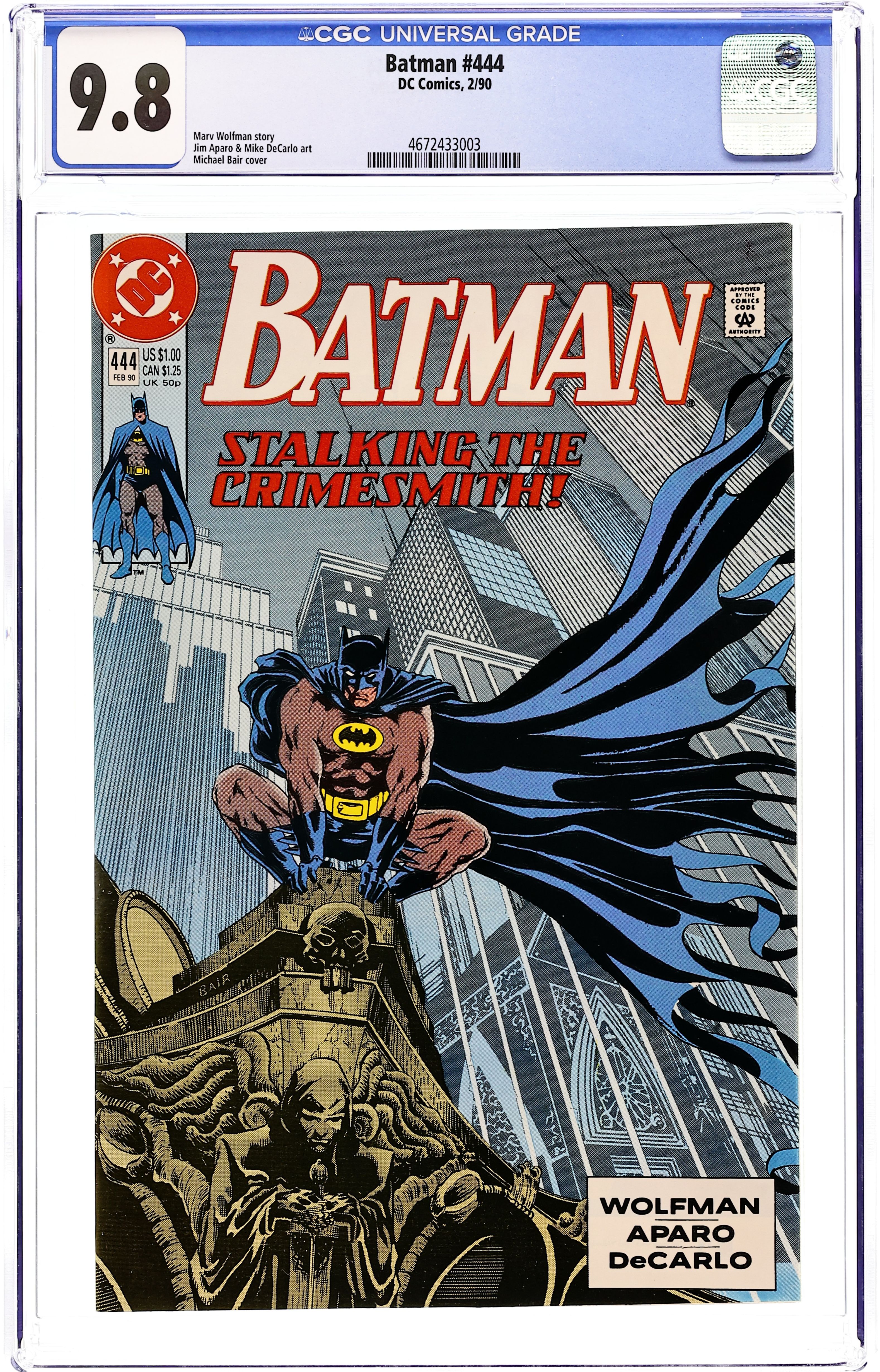 Direct Edition. Script by Marv Wolfman, pencils by Jim Aparo, inks by Mike DeCarlo. Michael Bair cover. Batman braves the gauntlet of Crimesmith's security system in "Crimesmith And Punishment". Part 2 of 2, continued from the previous issue. 36 Pages, Full Color. Cover price $1.00.