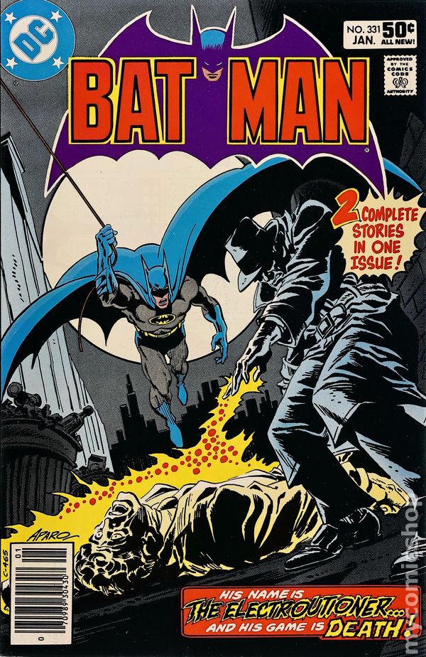 Newsstand Edition. Cover art by Jim Aparo. "Closed Circuit!", script by Marv Wolfman (plot) and Michael Fleisher (dialogue), pencils by Irv Novick, inks by Frank McLaughlin; The Electrocutioner, a self-appointed executioner of bad guys who escape justice, begins a series of crook-killings in Gotham City with his electrically-charged suit; Talia goes to the Batcave, seeking sanctuary in the wake of Ra's Al Ghul's apparent death; Batman and Robin have falling out. Hostess Fruit Pies ad starring Aquaman, pencils by Curt Swan, inks by Vince Colletta. "Wolf in the Fold," script by Mike Barr, pencils by Don Newton, inks by Steve Mitchell; Batman disguises himself as policeman Al Nelson to try and find the person responsible for the disappearance of police investigator Mark Rearden. 36 Pages, Full Color. Cover price $0.50.