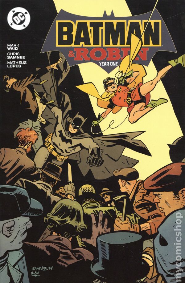 Written by Mark Waid. Art by Chris Samnee. Cover by Chris Samnee. REUNITING THE ACCLAIMED TEAM OF MARK WAID AND CHRIS SAMNEE! While Bruce Wayne adjusts to the realities of adopting orphan Dick Grayson, a mysterious new crime boss called the General has come to Gotham to claim the city by disrupting and destroying its other mobs. But what is his connection to Two-Face? Batman and his new sidekick, Robin, are out for answers, but it'll take everything they have to navigate both sides of their relationship as father and son and dynamic duo, with Dick Grayson's present and future hanging in the balance! 28 pages, full color. Rated T+