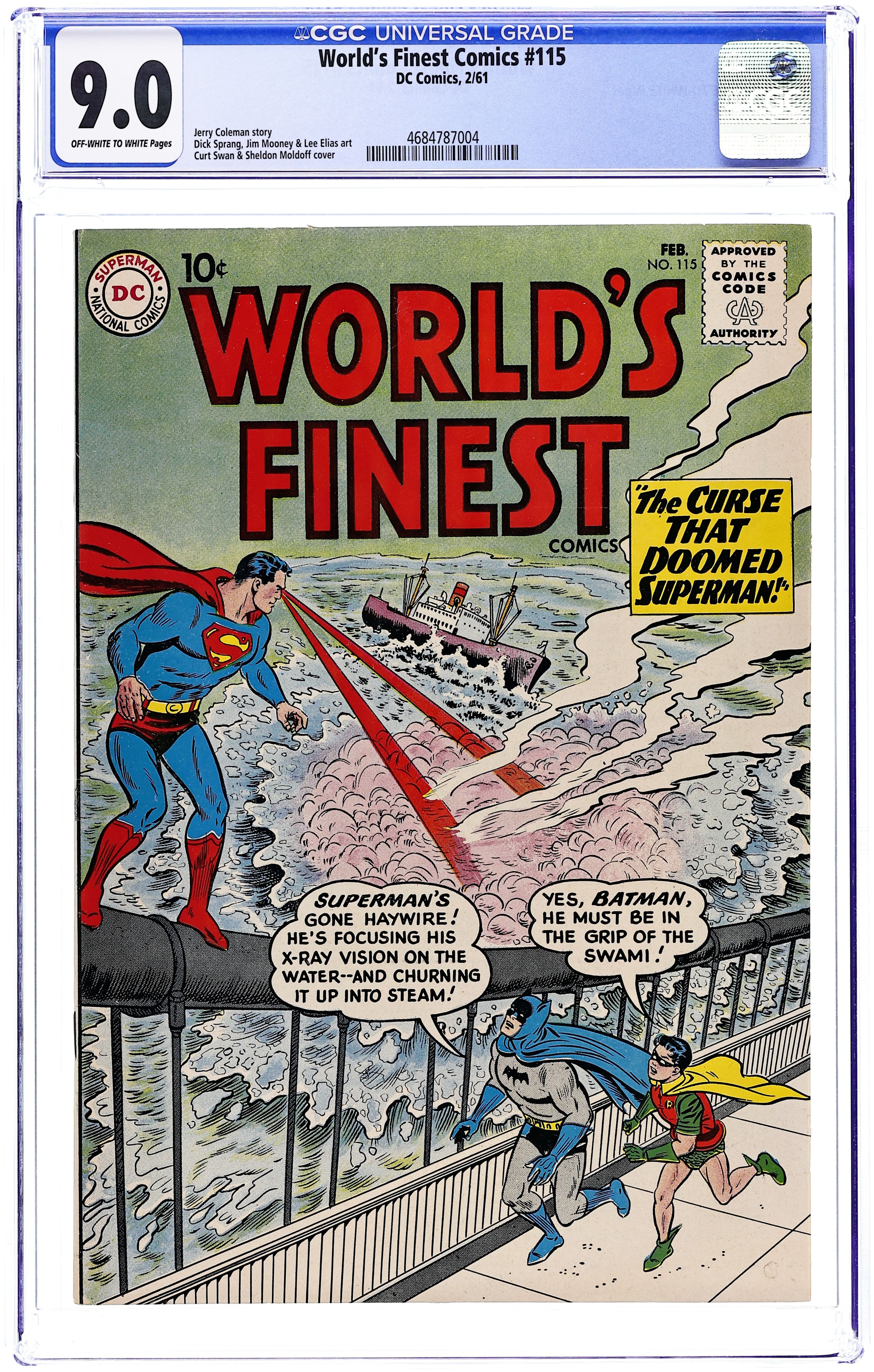 Cover pencils by Neal Adams, Curt Swan, and Win Mortimer, inks by Neal Adams, Stan Kaye, and Win Mortimer. The Origin of the Superman-Batman Team starring Superman and Batman, script by Edmond Hamilton, pencils by Dick Sprang, inks by Stan Kaye; When Batman learns Lex Luthor has kryptonite, he goes to Metropolis to warn Superman. The Mightiest Team in the World, script by Edmond Hamilton, pencils by Curt Swan , inks by Stan Kaye (1-8) and John Fischetti (9-12); Superman and Batman learn each other's IDs while sharing a cabin during an ocean voyage. Batman--Double for Superman, script by Alvin Schwartz, pencils by Curt Swan, inks by Stan Kaye. When Gotham City Challenged Metropolis starring Superman and Batman, script by Edmond Hamilton, pencils by Curt Swan, inks by Stan Kaye. The Dictator of Kandor, script by Bill Finger, pencils by Dick Sprang, inks by Stan Kaye. The Club of Heroes, script by Edmond Hamilton, pencils by Dick Sprang, inks by Stan Kaye. 84 Pages, Full Color. Cover price $0.25.