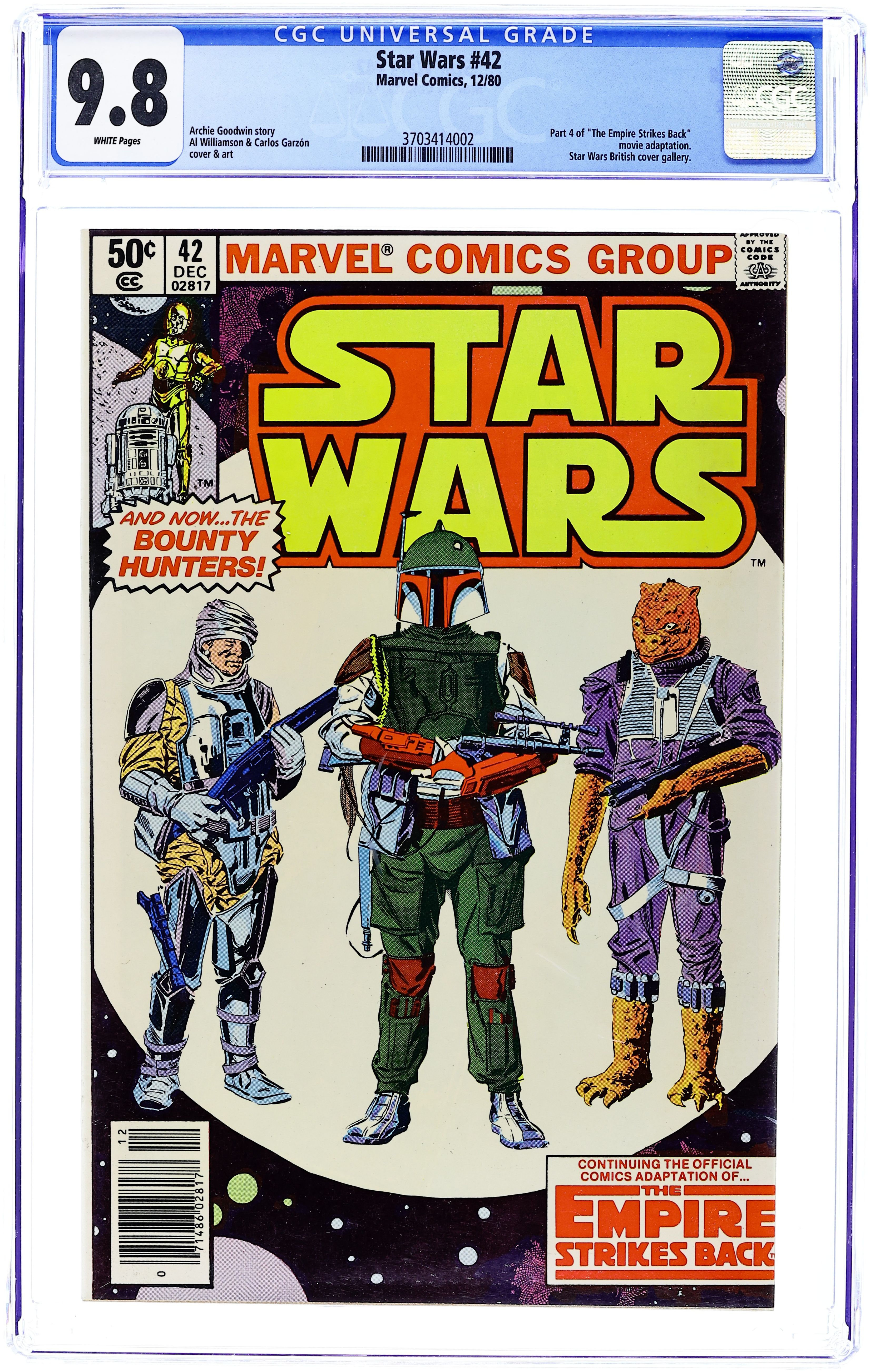 Ends Apr 16 9:11 PM CST Bid History 7 bids Current Bid $125 Your Secret Max Bid If you'd like to bid, please log in or register. Direct Edition. The Empire Strikes Back: Part 4 of 6. And now...the bounty hunters! "To Be a Jedi!" Script by Archie Goodwin, art by Al Williamson and Carlos Garzon. Note: Part 4 of movie adaptation; based on the movie script; Williamson and Garzon both pencil and ink the art for this series. Plus: 5-page "Star Wars British Cover Gallery," featuring art by Carmine Infantino, Gene Day and Dan Green. Cover by Williamson and Garzon. Cover price $0.50.