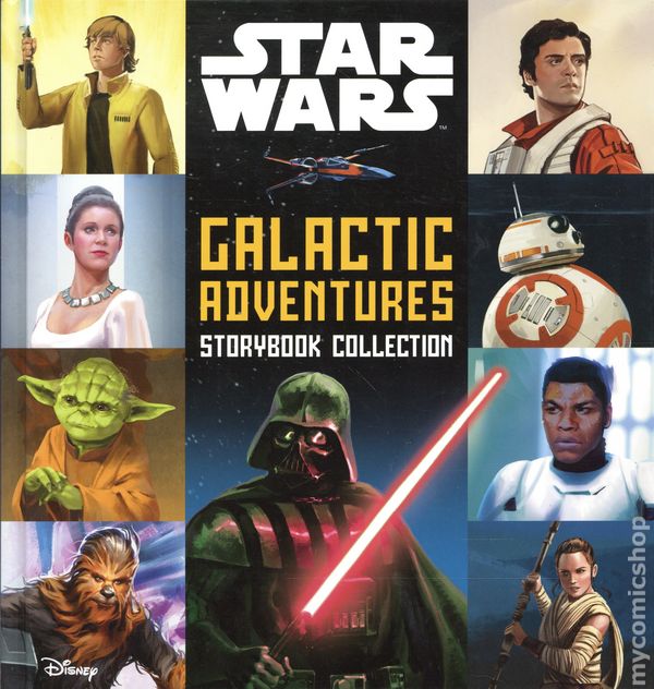 1st printing. Blast off with your favorite Star Wars heroes and villains in this epic hardcover storybook collection! The Force is strong with this hardcover collection of eighteen original illustrated stories set during the Skywalker saga. These new adventures are perfect for young Padawans and feature everyone's favorite heroes and villains, including Darth Maul, Yoda, Anakin Skywalker, Obi-Wan Kenobi, Darth Vader, Princess Leia, Chewbacca, Luke Skywalker, Han Solo, Lando Calrissian, R2-D2, C-3PO, Poe Dameron, BB-8, Rey, Finn, and more! Hardcover, 9-in. x 9-in., 302 pages, full color. Age 3-7 years Cover price $18.99.