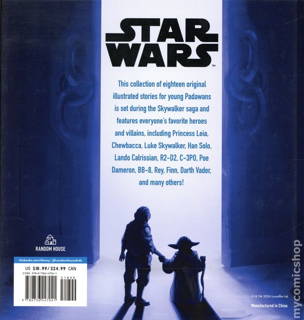 This collection of 18 all-new illustrated stories for young Padawans spans the entire Star Wars saga, and features everyone's favorite heroes and villains, such as: Darth Maul, Yoda, Anakin Skywalker, Obi-Wan Kenobi, Darth Vader, Princess Leia, Chewbacca, Luke Skywalker, Han Solo, Lando Calrissian, R2-D2, C-3PO, Poe Dameron, BB-8, Rey, Finn, Captain Phasma and Rose Tico!