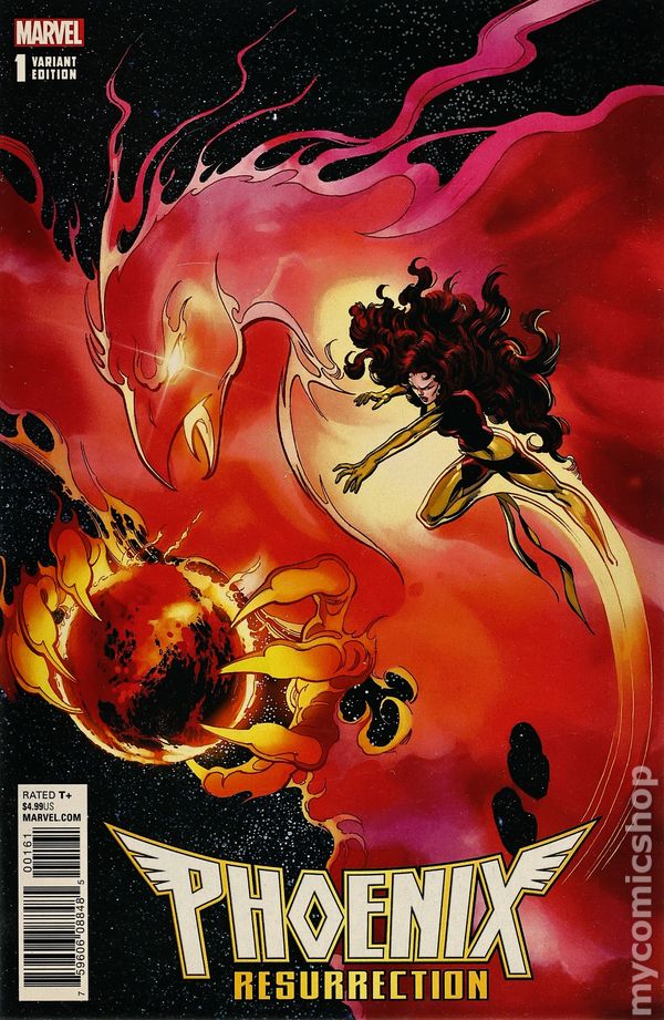Mark Brooks B variant. . Written by Matthew Rosenberg. Art by Leinil Francis Yu. She will return, like a Phoenix from the ashes. Years ago, Jean Grey died and the X-Men mourned her. Since then, the world has changed, her teammates have lived without her and died without her. And now, when strange events start happening all over the world, those teammates can only come to one conclusion - the one true Jean Grey is back! 36 pages, full color. Rated T+ Cover price $4.99.
