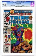 Direct Edition. "Champion!" Guest-starring Thor, Hulk, Sub-Mariner, Colossus, Sasquatch, Doc Samson, and Wonder Man. Cameos by the Fantastic Four, Avengers, and X-Men. Story by Tom DeFalco. Art by Ron Wilson, Camp Esposito, Giacoia, Dan Green, and Chic Stone. In arguably the best Thing story of all, a cosmic immortal known as the Champion, a being of nigh immeasurable strength whose existence is defined by physical contest, arrives on Earth and wishes to test his mettle against the mightiest heroes this planet has to offer. If they do not fight, this powerful being will destroy the Earth. After readily dispatching all contenders, the last man standing is Aunt Petunia's favorite nephew. But, can even the strongest member of the Fantastic Four hope to defeat an Elder of the Universe? 48 pages.