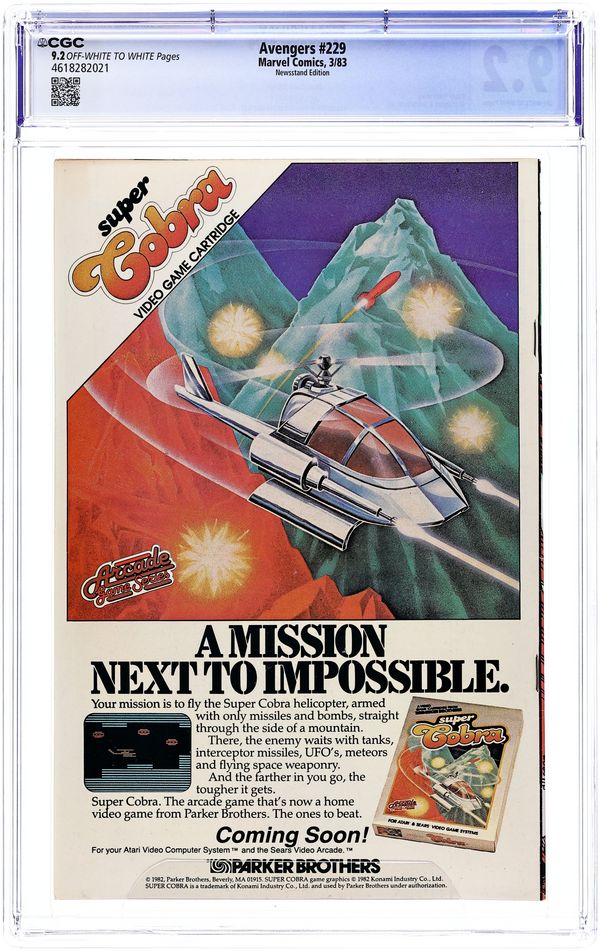 Direct Edition. "Holocaust in a Hidden Land!" Part 2 of 2. Guest-starring Ka-Zar and Shanna. Script by Roger Stern. Art by John Buscema (breakdowns) and Tom Palmer (finishes). Cover by John Buscema and Tom Palmer. Terminus is on a rampage through the Savage Land! And only Earth's Mightiest Heroes stand between the powerful alien and the utter destruction of the bottom of the world! Will the combined might of the Black Knight, shield-slinger, Starfox, Wasp, and Prince of Power be enough to prevent the annihilation of the hidden paradise? Or will Antarctica, centuries later, finally reclaim the Savage Land? A cold and bitter ending for Ka-Zar and the Avengers! Meanwhile light years away in outer space, Captain Marvel meets a new super-villain that will battle the Avengers for years to come! First appearance of Nebula. (Notes: The Savage Land first appeared in Uncanny X-Men (1st series) 10. The High Evolutionary attempts to restore the Savage Land in Uncanny X-Men Annual 12. This issue includes a full-page ad for the Secret Wars II Limited Series.) 36 pages Cover price $0.65.