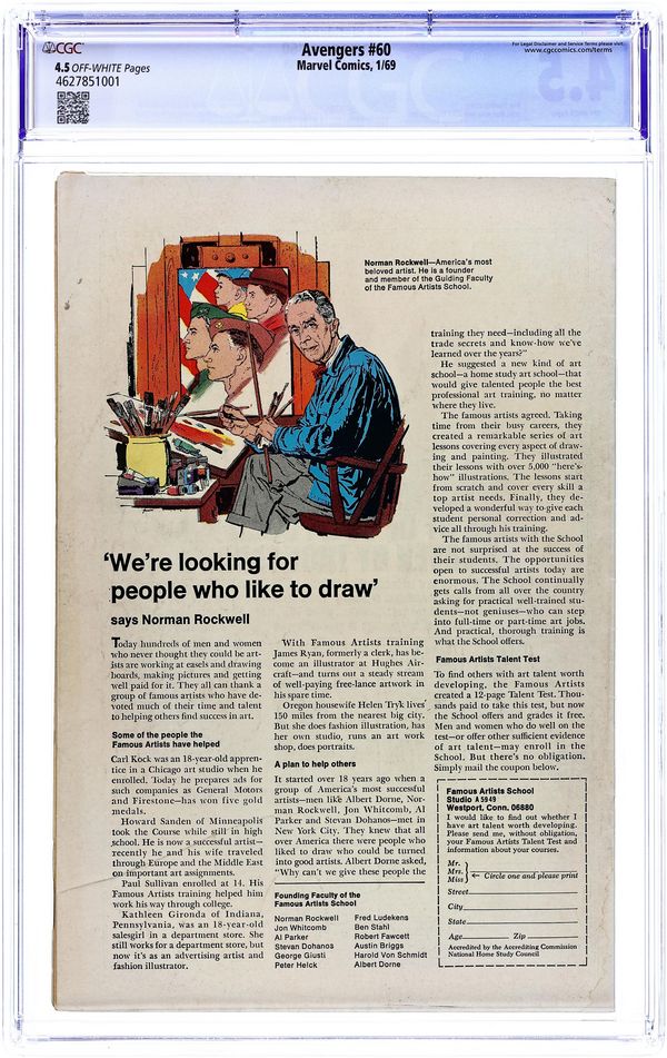 Tags: Marvel Legacy Numbering: Avengers (part 58), AvengersAvengers (1963 1st Series) 58 CGC 6.5