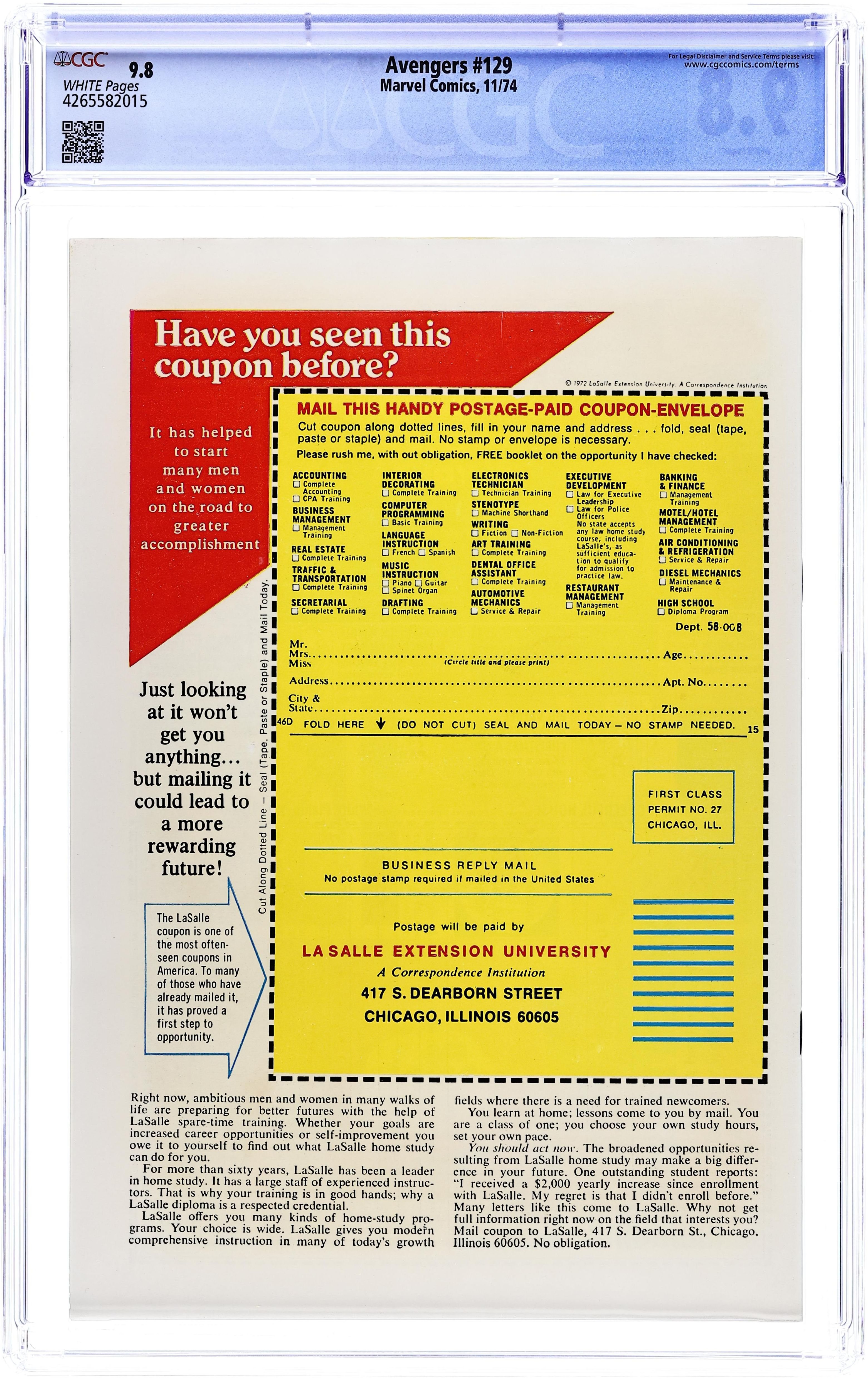 Tags: Marvel Legacy Numbering: Avengers (part 142), AvengersAvengers (1963 1st Series) 142 CGC 8.5