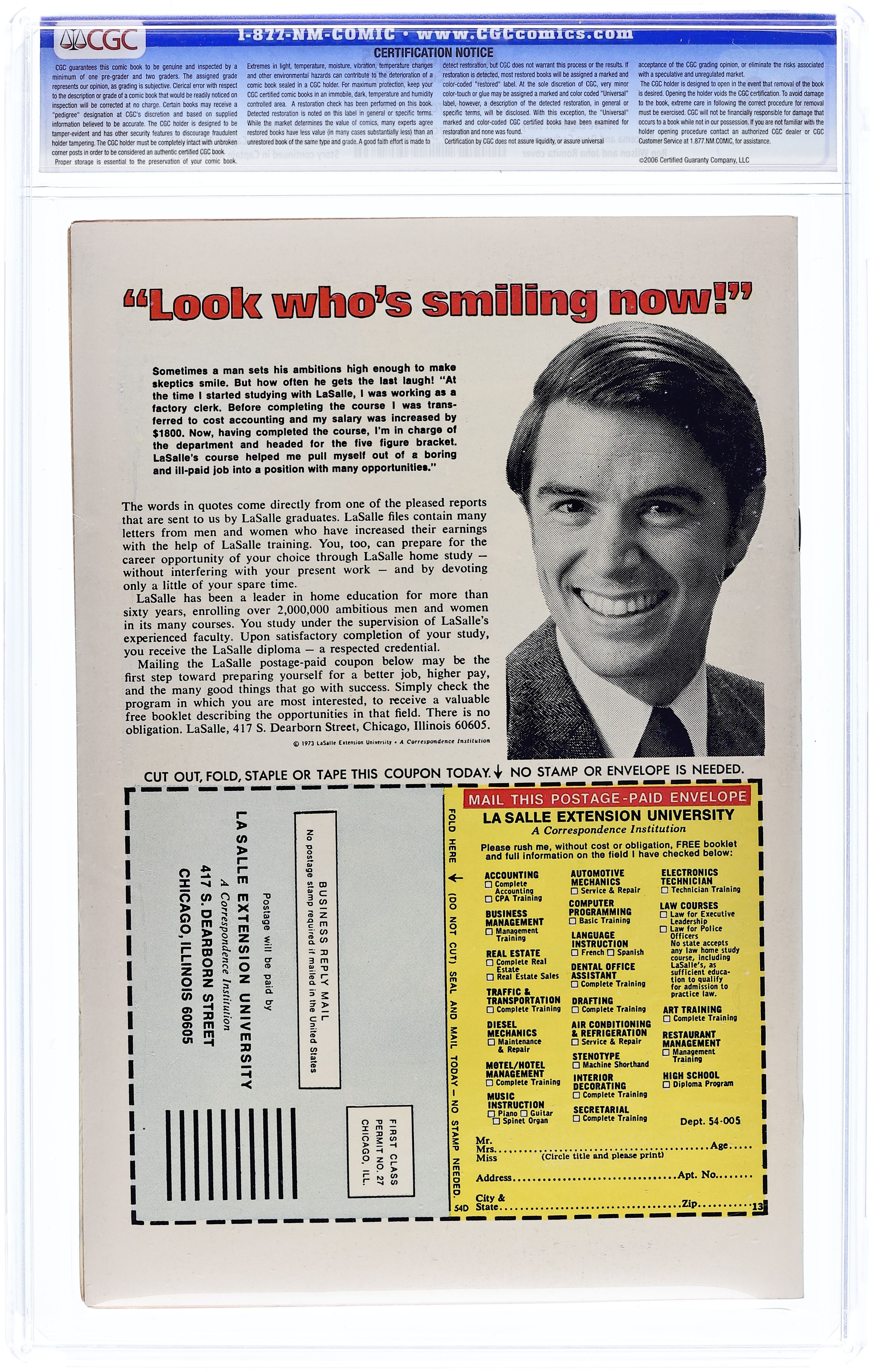 "The Gods and the Gang!" Part 7 of 7. Script by Steve Englehart. Pencils by George Perez. Inks by Sam Grainger. Cover by George Perez and Frank Giacoia (with touch-ups from John Romita). The Avengers return to the Brand Corporation facility on Long Island! And waste no time jumping into a brawl with Brand's private army! But Hugh Jones and Buzz Baxter have a secret weapon waiting for Earth's Mightiest Heroes...Orka, the human killer whale! Fortunately though, Moondragon and Thor have returned to New York following their Wild West adventure, and the two god-like avengers join the fight against Orka! Two fantastic battles will determine if the Avengers live or die: the thunder god vs. Orka...and Hellcat vs. Buzz Baxter! An awesome conclusion to the Serpent Crown saga! Cameo appearance by the Squadron Supreme. (Notes: Orka previously appeared in Sub-Mariner 67. This seven-part story was reprinted in 2005 in the trade paperback, Avengers: The Serpent Crown. The letters page includes a letter from comics artist Richard Howell. A 30-cent cover price variant exists for this issue.) 36 pgs. Cover price $0.25.