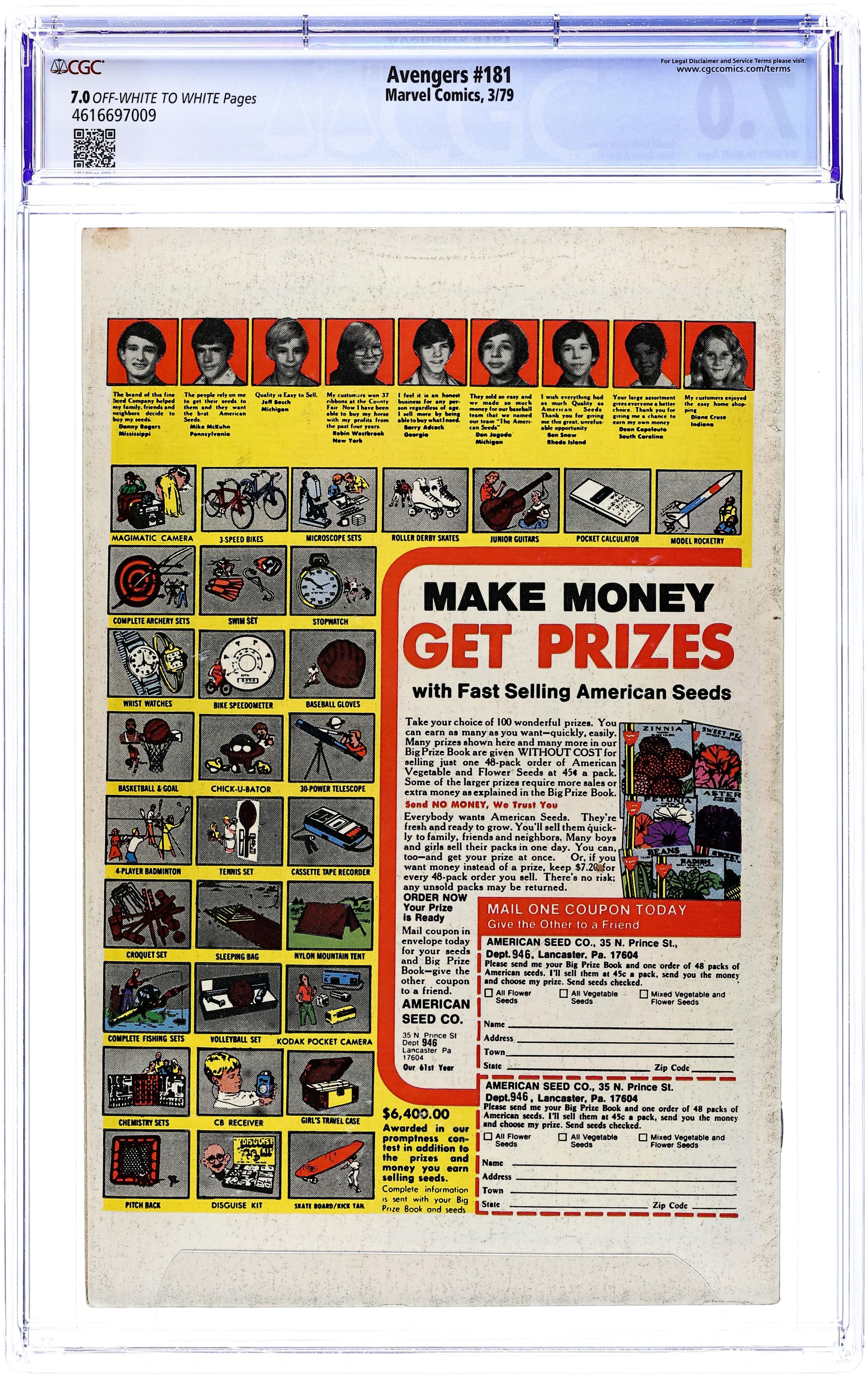 Tags: Marvel Legacy Numbering: Avengers (part 181), AvengersAvengers (1963 1st Series) 181 CGC 9.8