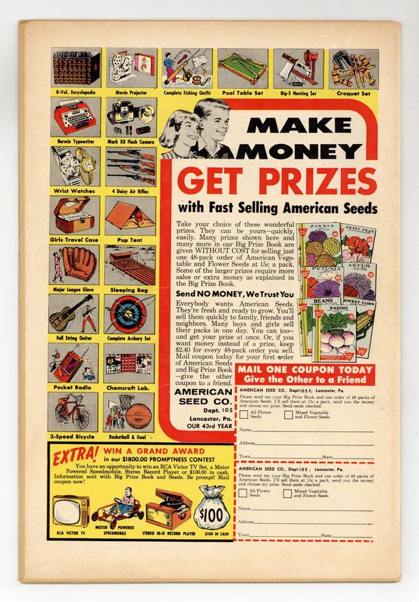Starts Apr 4 The Justice Society of America in "The Workshop of Willie Wonder." Script by Gardner Fox. Art by Martin Naydel plus individual stories featuring Hawkman (art by Jon Chester Kozlak), Dr. Mid-nite (art by Stan Aschmeier as "Stan Josephs"), Green Lantern (art by Paul Reinman), the Atom (pencils by Irwin Hasen, inks by Kozlak), Johnny Thunder (art by Aschmeier), and the Flash (art by Naydel). Wonder Woman cameo. Two-page text story, "Showdown Stuff" by Jim Robinson. One-page Tootsie Roll ad, "Captain Tootsie and the Wolf Hunt" by C.C. Beck and Pete Costanza. Naydel cover. 52 Pages, Full Color. Cover price $0.10.